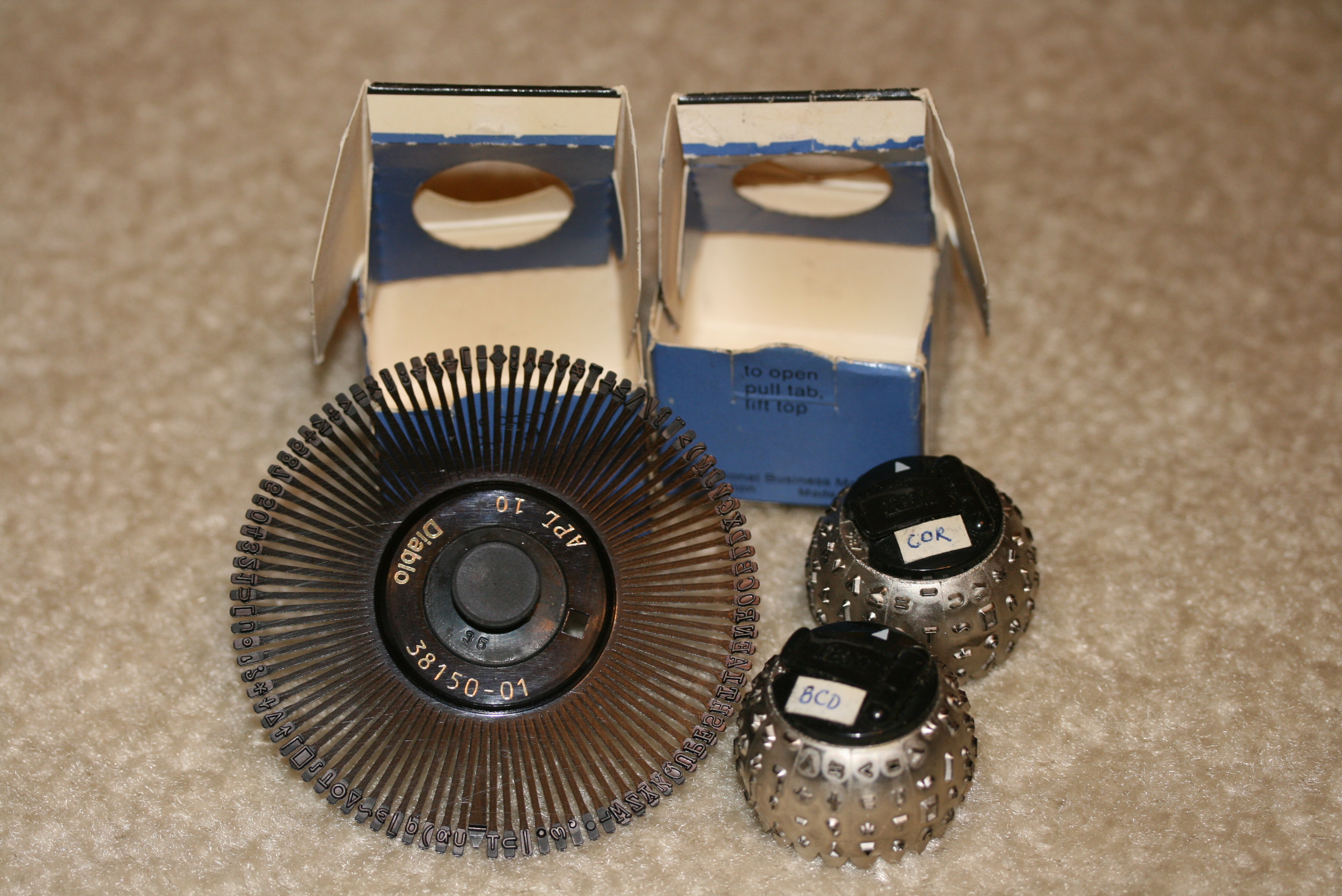 APL을 효과적으로 사용하기 위해 특수 IBM Selectric 타자기 교체형 타이핑 요소가 개발되어 IBM 1050 및 IBM 2741 터미널 등에서 사용되었다.[12]