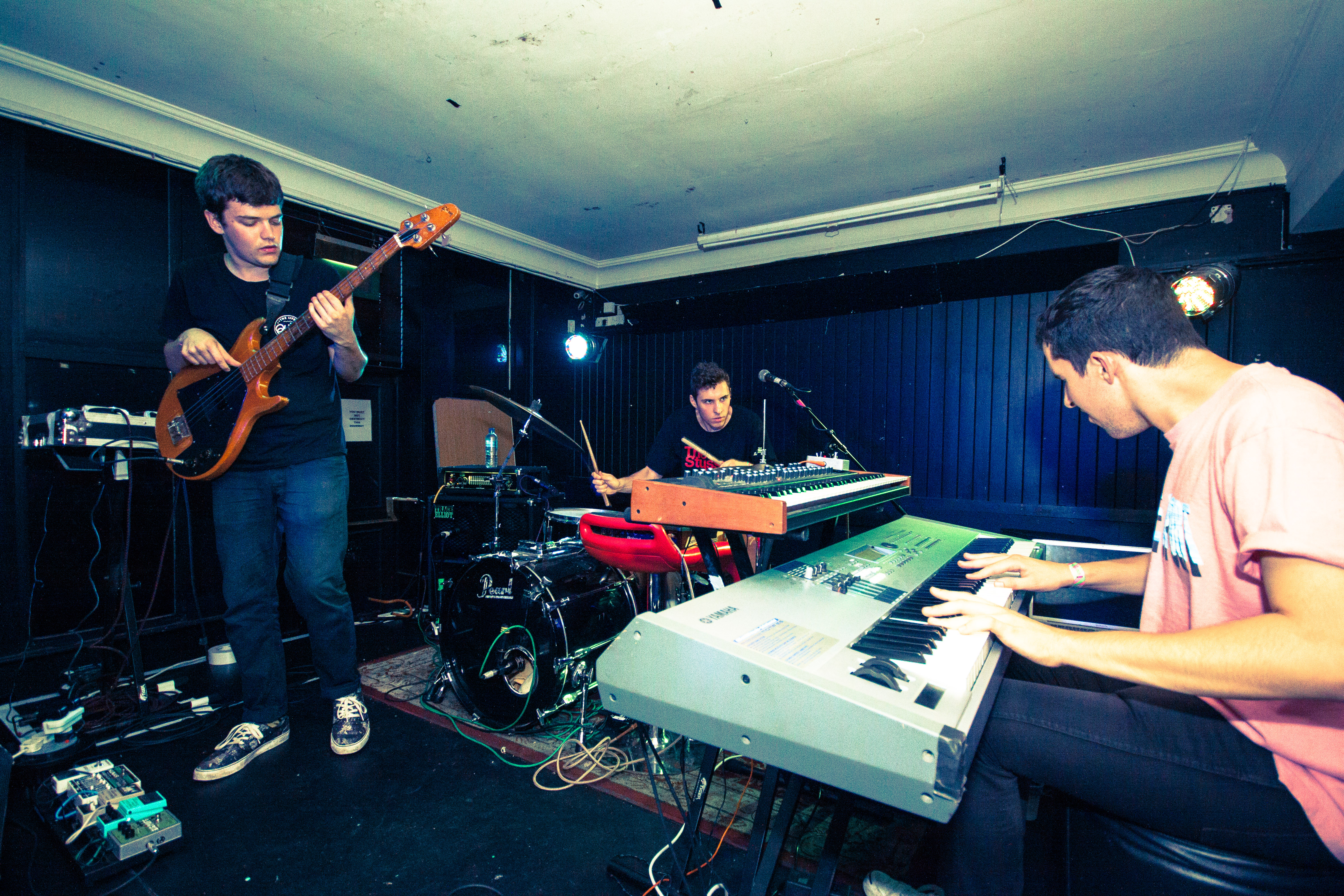 : "우리는 우리가 하는 것을 재즈 훈련으로 음악에 접근하는 것으로 생각합니다. 작곡할 때 재즈 언어를 사용하지만, 우리는 능숙하지 않습니다. 우리는 이 장르의 최고 음악가가 아니기 때문에, 재즈가 이러한 경계를 허물고 무한한 끊임없는 발전, 하루 8시간의 연습이라는 역사를 가지고 있기 때문에, 우리 자신을 다작하는 혁신가로 여기려고 하지 않습니다. 우리는 악기를 독주자로서 발전시키는 대신, 프로덕션, 녹음 기법, 작곡, 전혀 다른 장르의 음악 탐구 등 다른 관심사를 찾는 법을 배웠습니다. 우리는 콜트레인과 선 라, 그리고 이 모든 진보적인 음악가들을 듣지만, 인터넷과 우리가 속한 시대 때문에 모든 것을 연구하는 것을 좋아합니다. 계속 교육받고 배우는 것은 우리에게 이상한 일이지만 계속되는 일입니다."