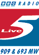 BBC 라디오 5 라이브는 전국적으로 중파 주파수 693kHz 및 909kHz에서 AM 방송으로 방송되며, 웨일스 서부 카디건 만에서는 주파수 990kHz를 사용한다.[21] 이 주파수는 이전 BBC 라디오 5에서 사용되었으며, BBC 라디오 5는 다시 BBC 라디오 2에서 주파수를 넘겨받았다. BBC 라디오 네트워크에서 유일하게 순수 디지털 방송(예: 1Xtra, Radio 4 Extra, 6 Music)도 아니고 FM 방송으로 아날로그 방송도 하지 않는 유일한 방송국이다.