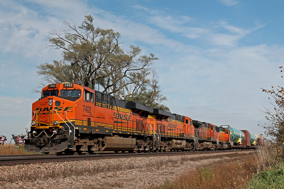 [[파일:BNSF 880362, Glen Haven, WI, 2006-06-03.jpg|thumb|위스콘신주 글렌 헤이븐(Glen Haven)을 통과하는 새로운 기업 로고가 부착된 유조차(BNSF 880362), 2006년 7월 3일]