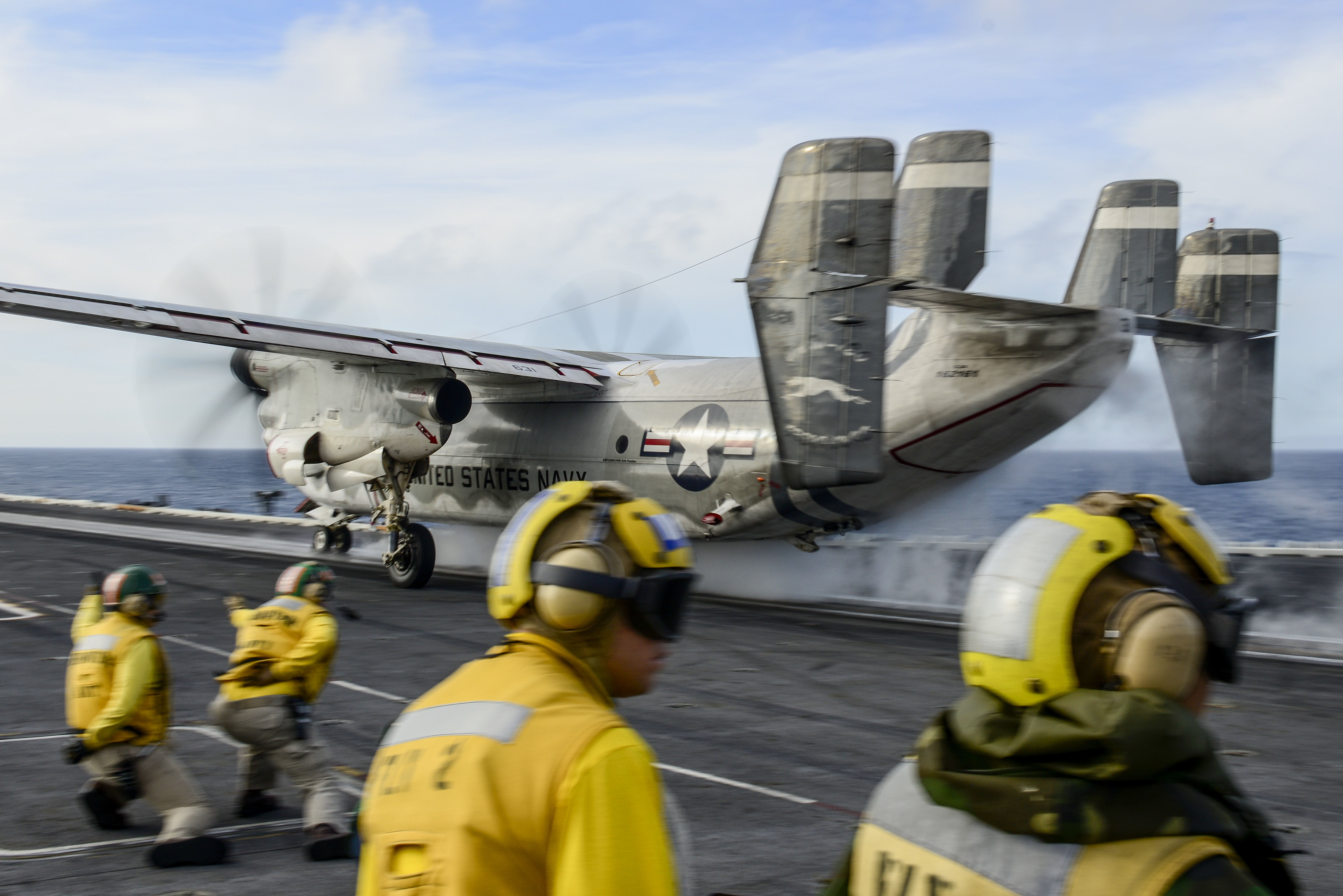 - 2017년 11월 22일, VRC-30 소속 C-2A가 승무원과 승객 11명을 태우고 미 해군 항공모함으로 비행 중 필리핀 해의 오키나와 섬 동남쪽 해역에 추락했다. 11명 중 8명이 구조되었고, 3명은 사망했다.[29][30][31][32][33][34] 2017년 12월 마지막 주에 구조선이 비콘 수신기를 사용하여 항공기의 비상 신호를 감지하여 수심 5640m에서 해저에 항공기를 발견했다. 미국 해군은 2019년 5월 말에 항공기를 인양하여 내부에서 승무원 3명의 유해를 수습했다.[35][36][37]