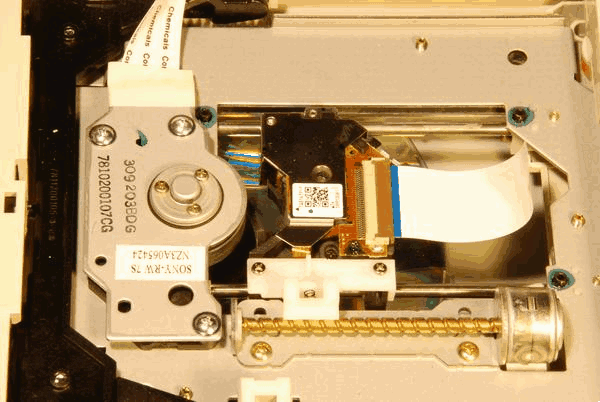 CD-ROM 드라이브는 CD-ROM 디스크를 읽는 장치이다. CD-ROM 드라이브는 근적외선 780 nm 레이저 다이오드를 사용한다.[29][30] 레이저 빔은 광전자 추적 모듈을 통해 디스크로 향하고, 이 모듈은 빔이 반사되었는지 또는 산란되었는지를 감지한다.