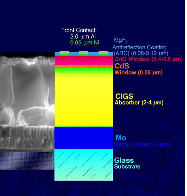 경쟁이 치열한 PV 산업에서 CIGS 제조업체들은 어려움을 겪었지만, CIGS 태양 전지는 다결정 실리콘 전지와 거의 동일한 효율을 달성했다. CIGS와 CdTe 태양 전지는 상업적으로 성공한 박막 기술이다.[30]