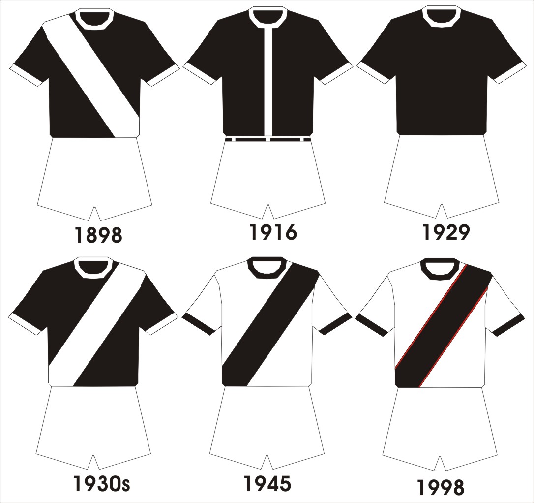 1898년 조정 클럽으로 창단했을 당시, 바스쿠 다 가마의 첫 유니폼은 검은색 바탕에 왼쪽 상단에서 오른쪽 하단으로 내려오는 흰색 사선으로 이루어져 있었다.