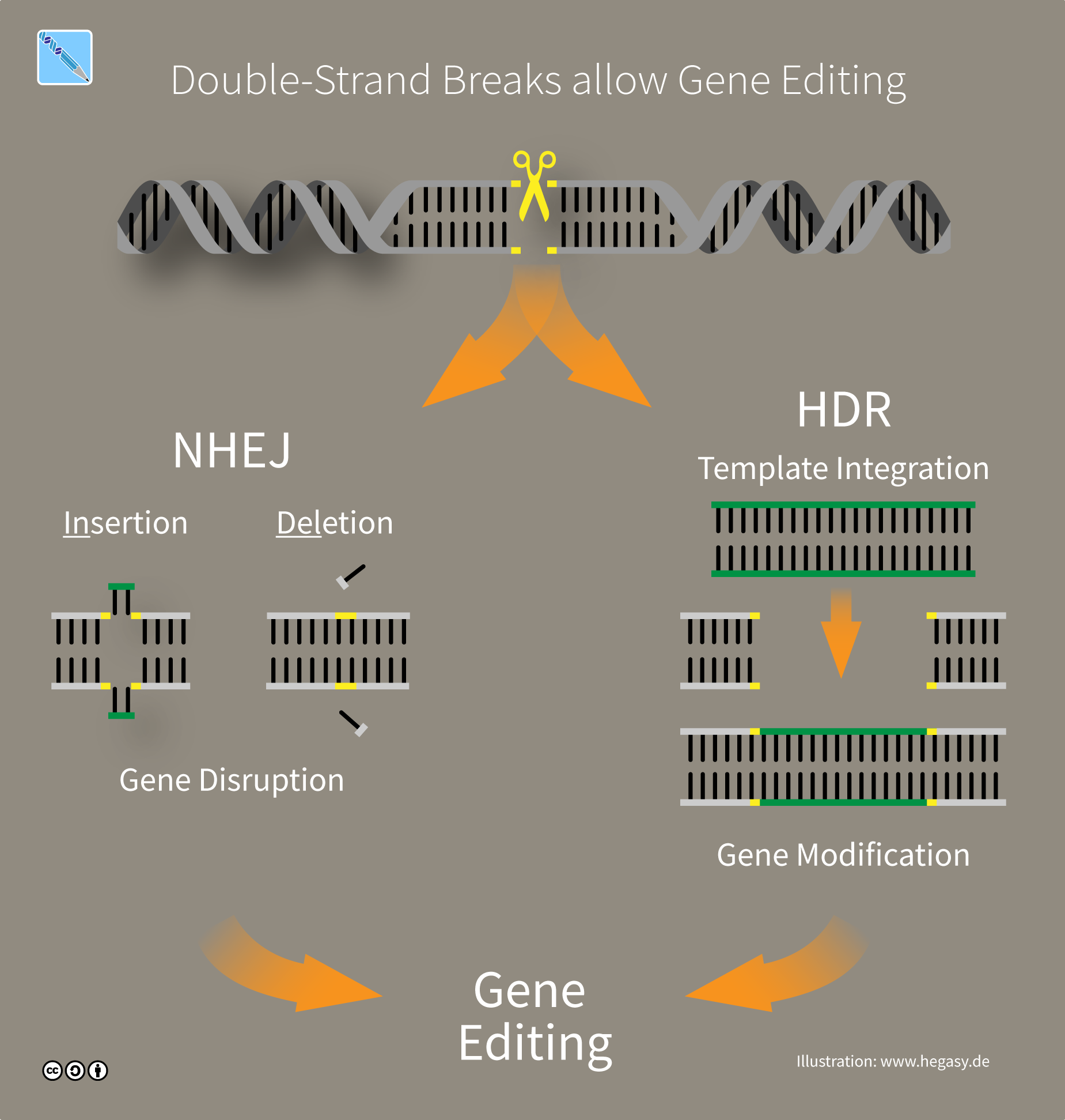 또한, 크리스퍼 캐스9과 함께 새로운 DNA 서열을 넣으면, 세포가 절단된 부분을 복구하는 과정에서 추가된 DNA 서열을 흡수하여 유전자를 편집할 수 있다.[238]