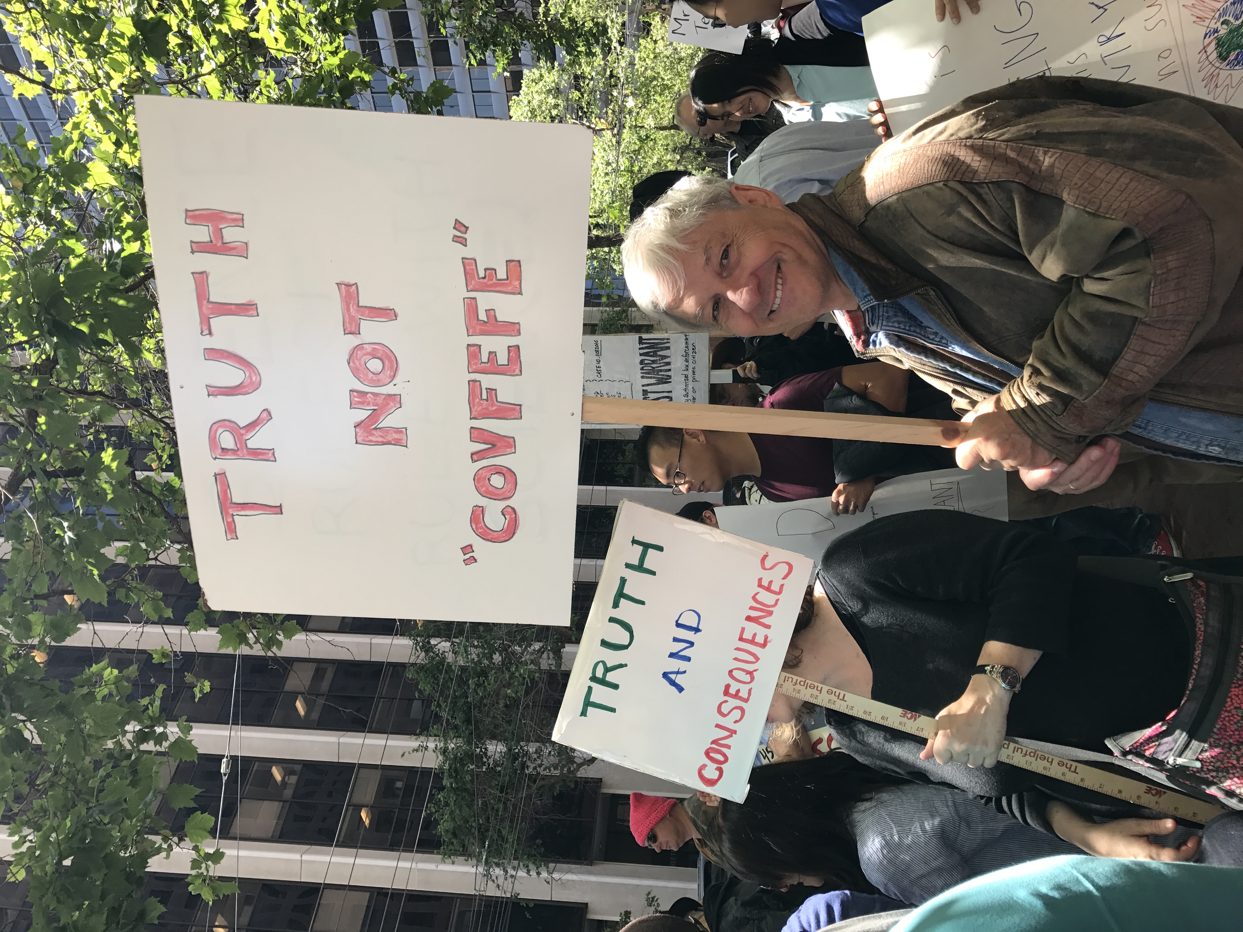 2019년 다양한 행사에서 트럼프 반대 시위자들은 covfefe를 이용한 팻말을 사용했다.[24][25][26]