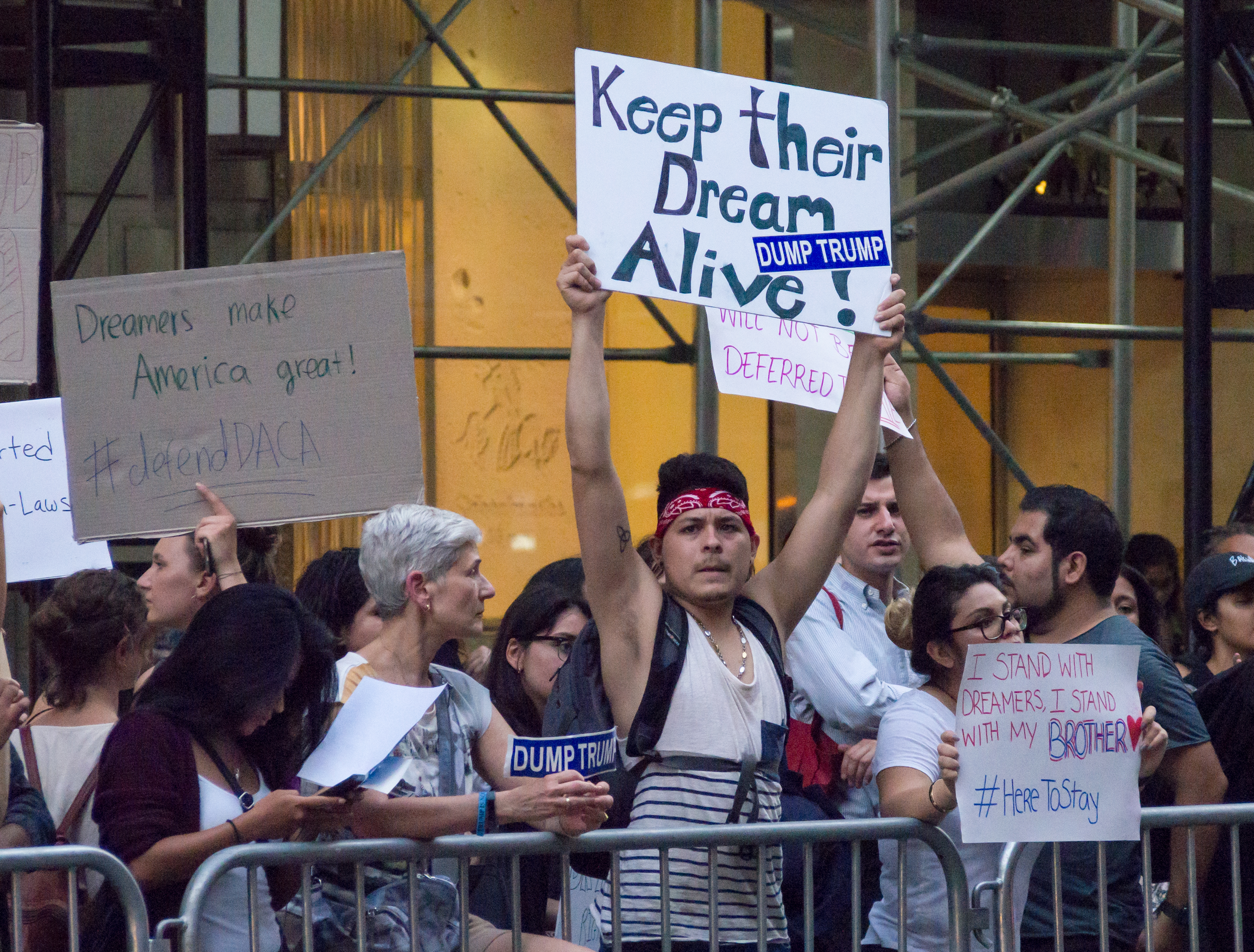 2017년 9월 DACA 폐지 발표는 워싱턴 D.C., 시카고, 로스앤젤레스를 포함한 많은 도시에서 시위를 촉발했다. 9월 5일 트럼프 타워 밖에서 열린 뉴욕 시위에서는 30명 이상의 시위대가 체포되었다.[161]