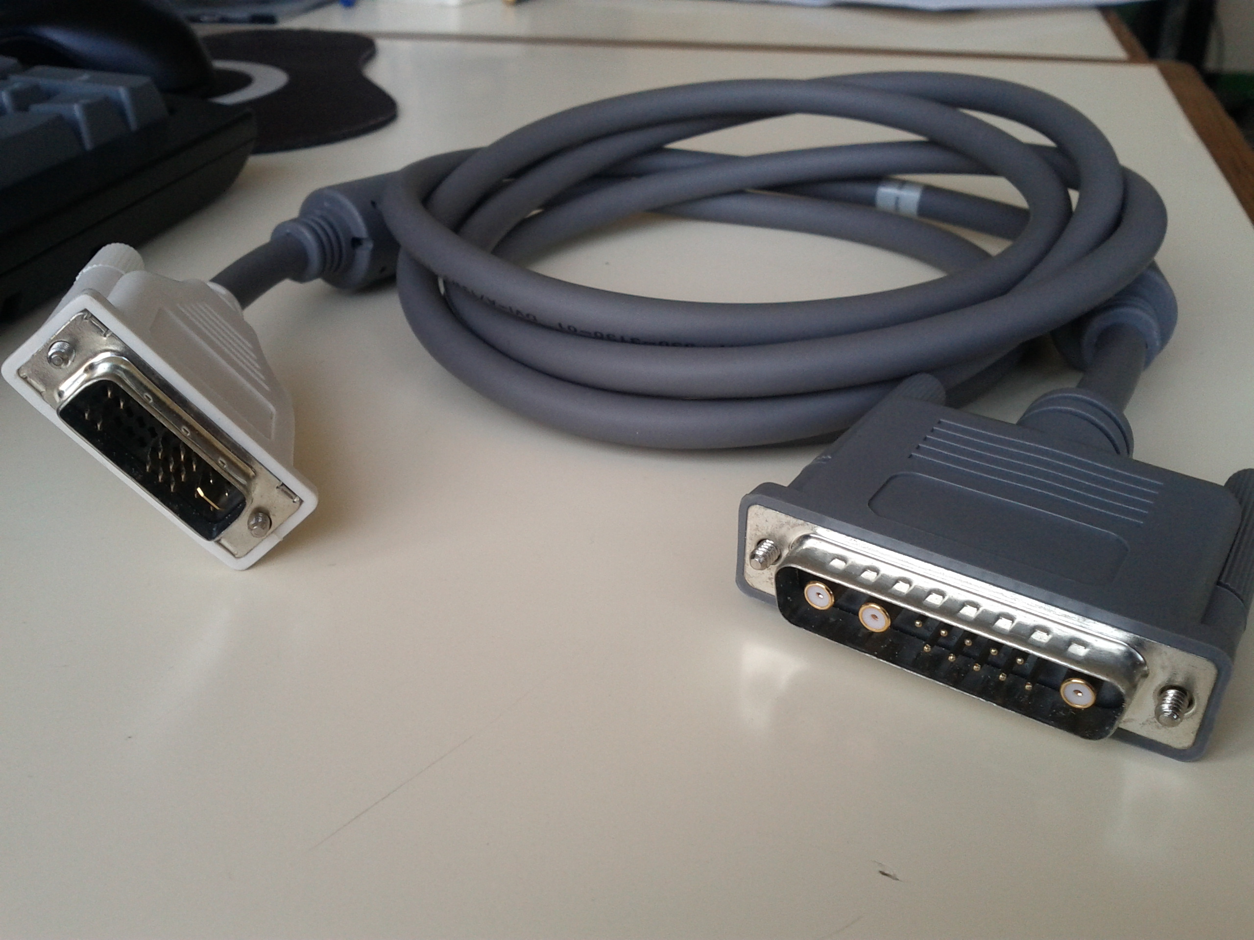 DB13W3 커넥터는 10개의 표준 신호 핀과 3개의 동축 케이블용 동심원 접점 또는 고전류 핀을 장착할 수 있는 큰 위치를 포함한다. 비디오 신호용 동축 커넥터는 빨강, 녹색/회색, 파랑 신호를 전달하며, 표준 신호 핀은 접지, 모니터 통신, 동기 신호 등을 전달한다.