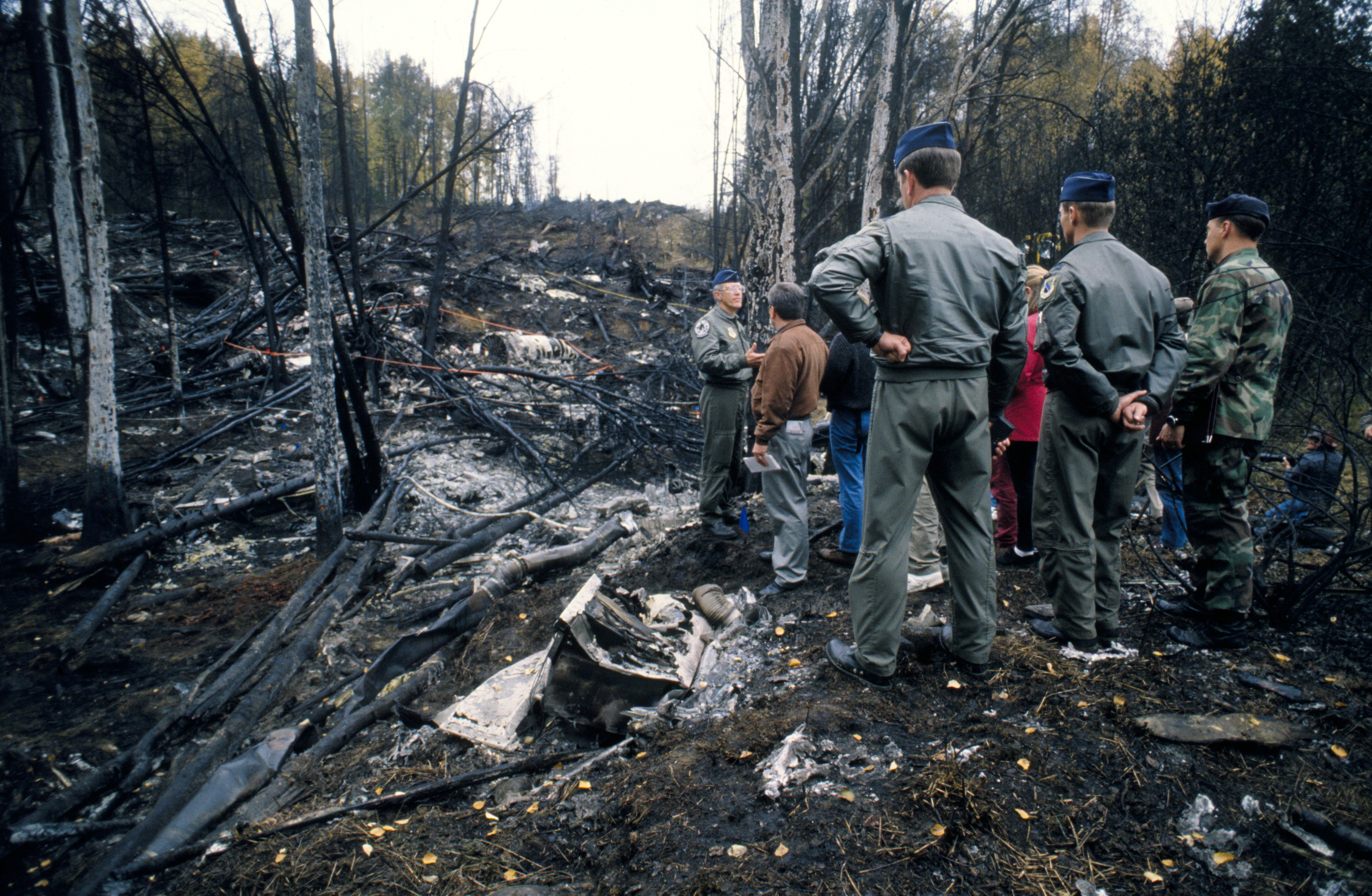 - 1995년 9월 22일, 미국 공군 E-3 센트리(콜사인 Yukla 27, 일련 번호 77-0354)가 알래스카 엘멘도프 공군 기지에서 이륙 직후 추락했다. 이륙 중 여러 마리의 캐나다 기러기를 흡입하여 왼쪽 엔진 두 대의 동력을 모두 잃었다. 항공기는 활주로에서 북동쪽으로 약 약 3.22km 떨어진 곳에서 추락하여 탑승한 승무원 24명 전원이 사망했다.[95][96]