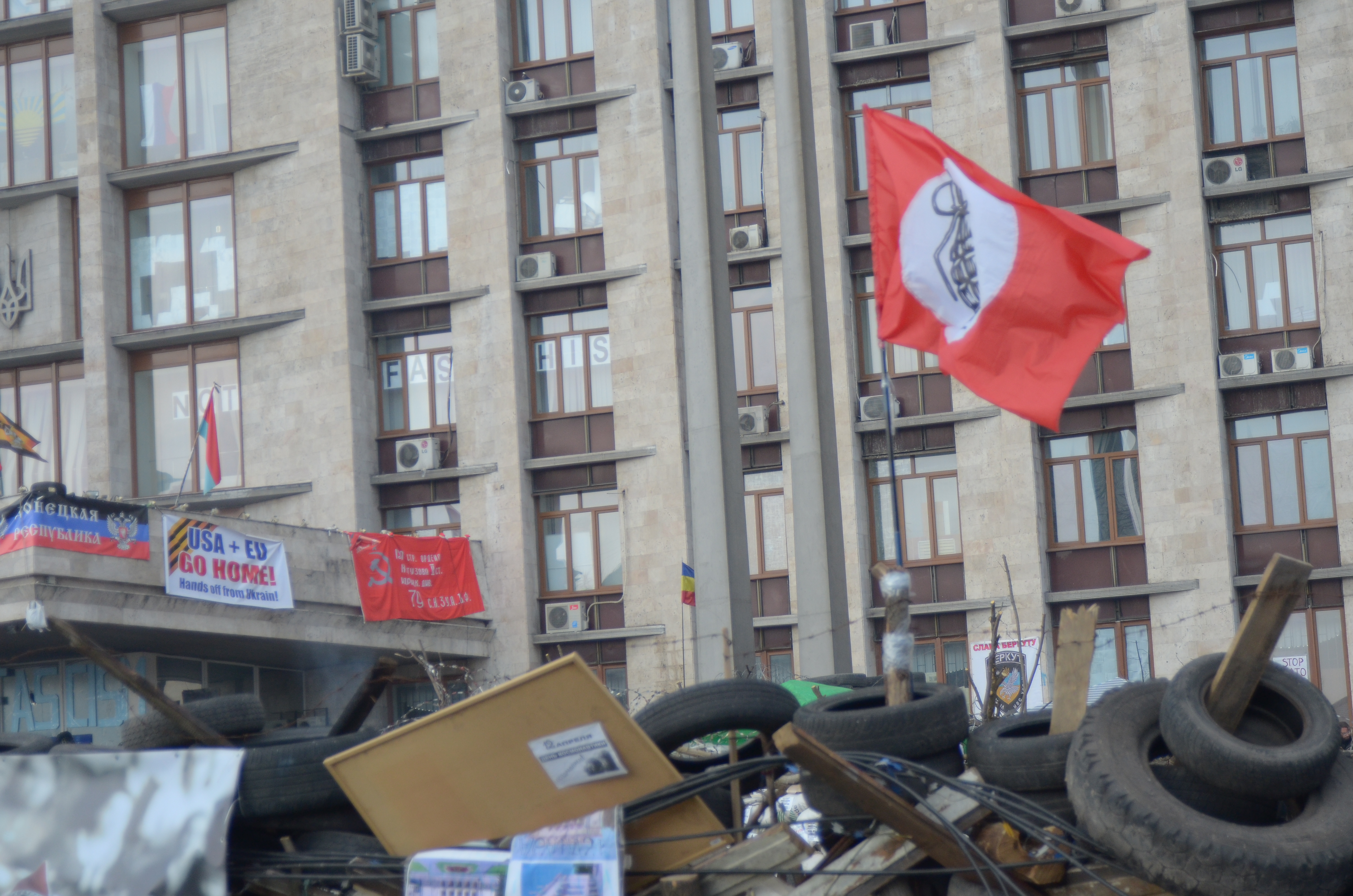 2014년 4월 친러시아 시위 당시 도네츠크 우크라이나에서 다른 러시아당의 당기