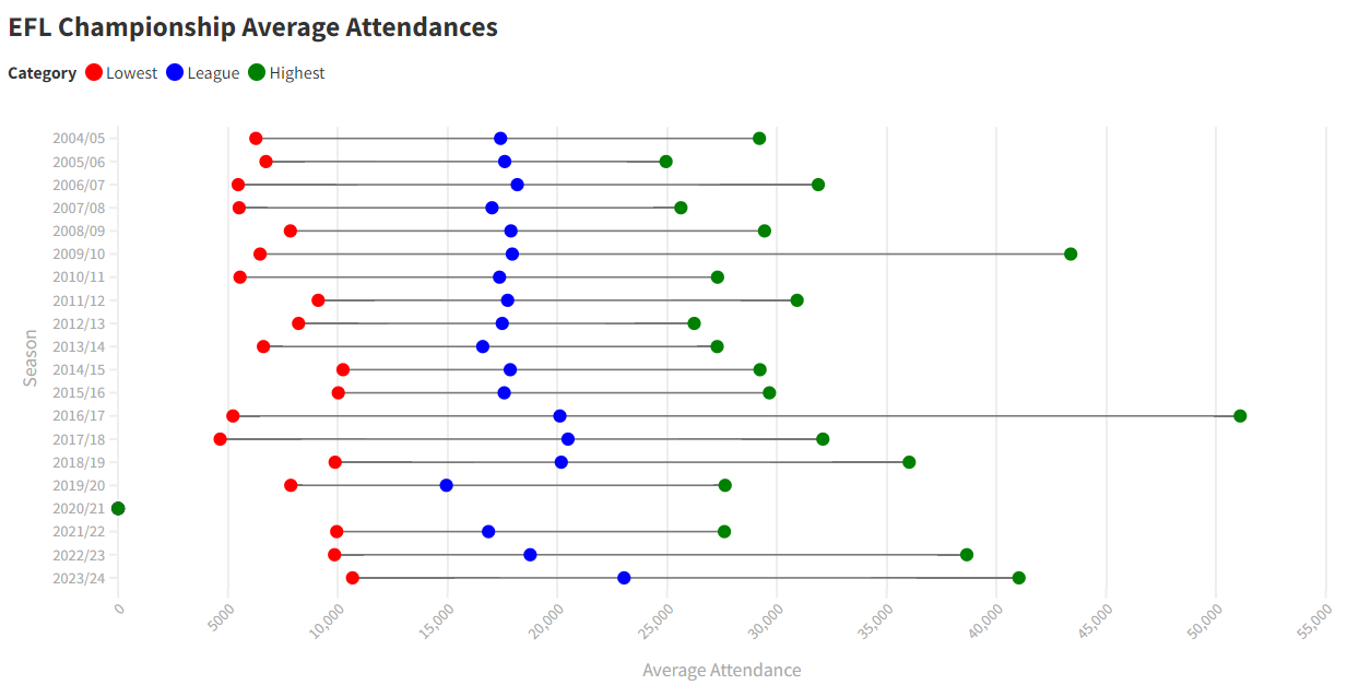 2016-17 시즌부터 풋볼 리그는 잉글리시 풋볼 리그(EFL)로 명칭이 변경되었다. 리그는 플레이오프 경기를 제외하고 1100만 명 이상의 누적 관중을 기록했고, 뉴캐슬 유나이티드와 애스턴 빌라의 홈 경기만 200만 명 이상이 관람했는데, 이 두 팀 모두 전 시즌에 프리미어 리그에서 강등되었다. 이는 1958-59 시즌 이후 잉글랜드 2~4부 리그에서 가장 높은 관중 수를 기록한 것이다.[20] 뉴캐슬은 2016-17 시즌에 우승했고, 애스턴 빌라는 13위로 마쳤으며, 결국 2019년에 프리미어 리그로 복귀했다.[21]