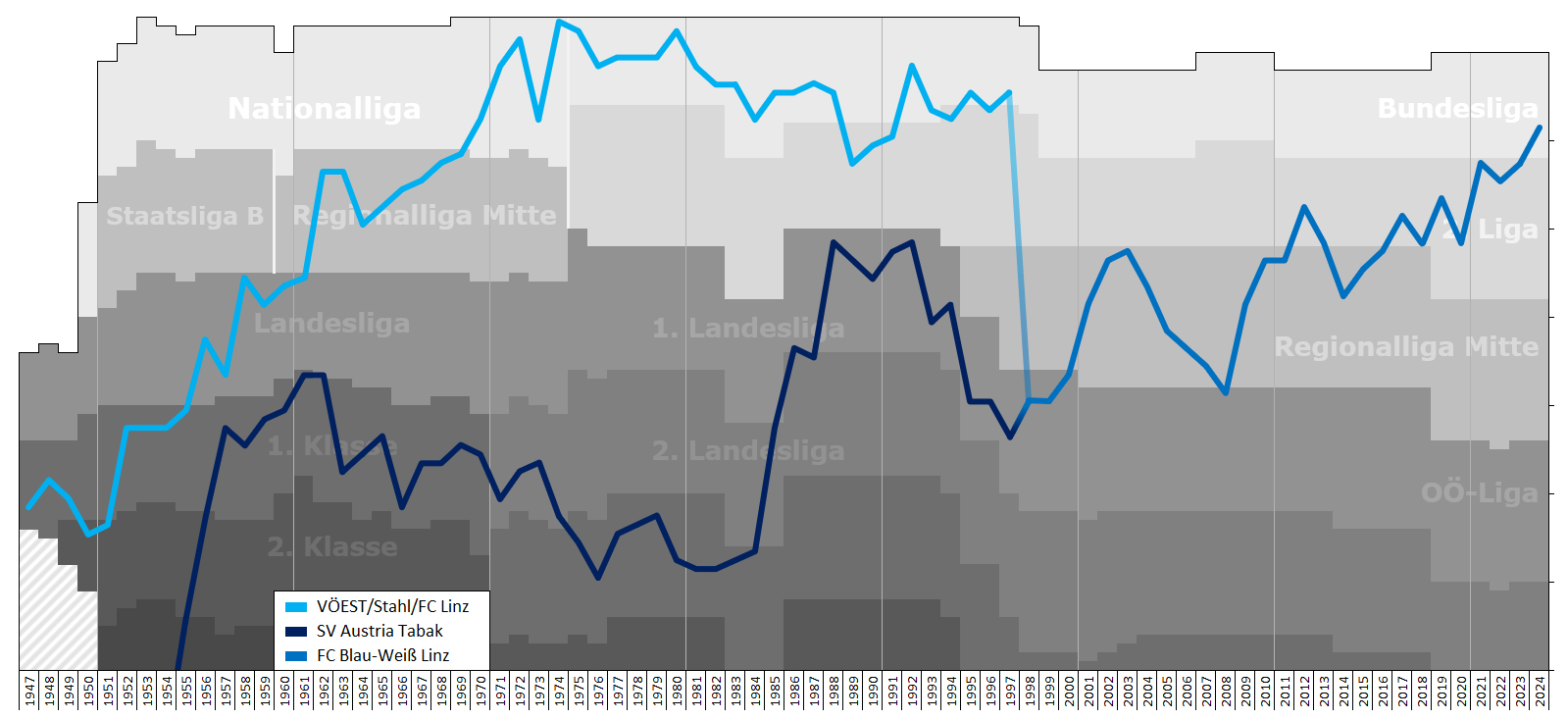 FC 블라우바이스 린츠는 2. 리가에서 2020-21 시즌과 2022-23 시즌에 우승을 차지했다.
