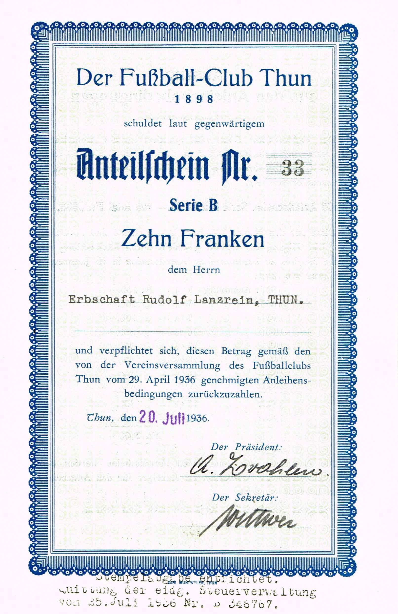 1898년 툰에서 창설되었다. 1955년 스위스 컵 대회에서 준우승을 차지하기도 했지만, 이후 오랫동안 하부 리그에 머물렀다. 2002년에 1부 리그로 승격하였고, 2004-2005 시즌에는 FC 바젤에 이어 리그 준우승을 차지하며 클럽 역사상 최고의 성적을 기록했다. 이는 적은 예산에도 불구하고 전 세계적인 스카우트망을 통해 유망주를 효율적으로 영입한 결과였다.