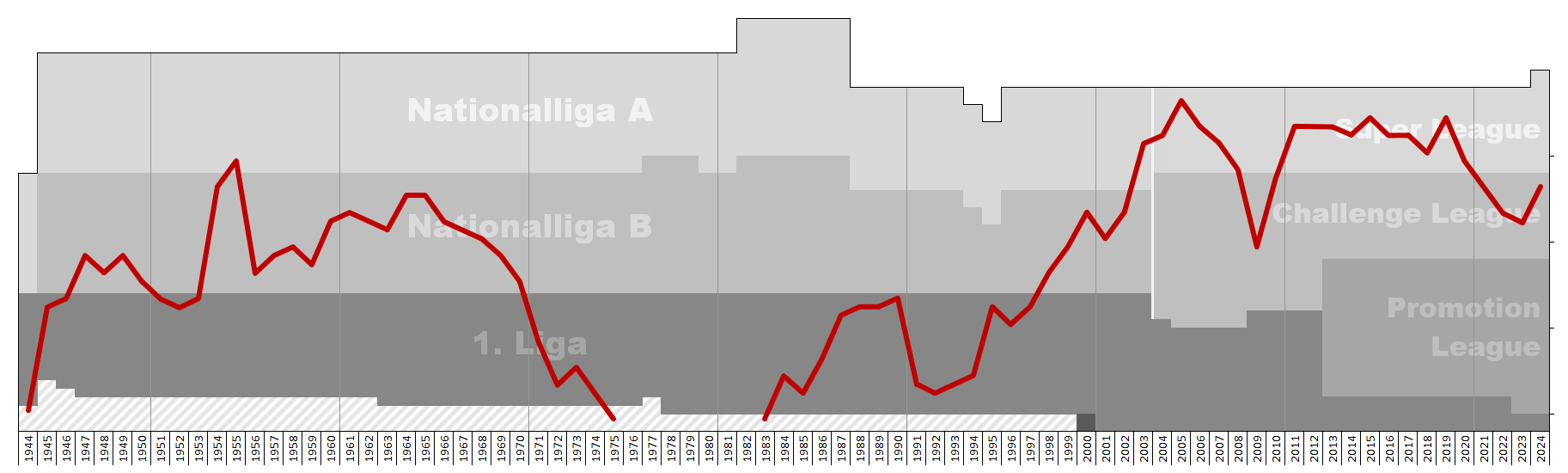 이후 1955년부터 1970년까지 계속해서 나티오날리가 B에 머물다가, 1969-70 시즌 종료 후에는 당시 3부 리그에 해당했던 스위스 1. 리가로 강등되었다.
