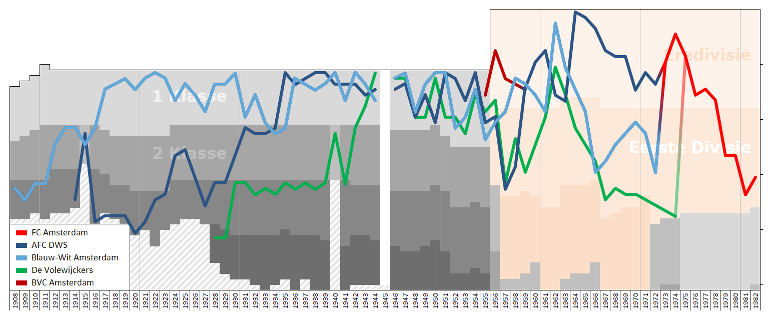 FC 암스테르담 리그 성적 역사 차트(블라우비트, 연한 파란색으로 표시)