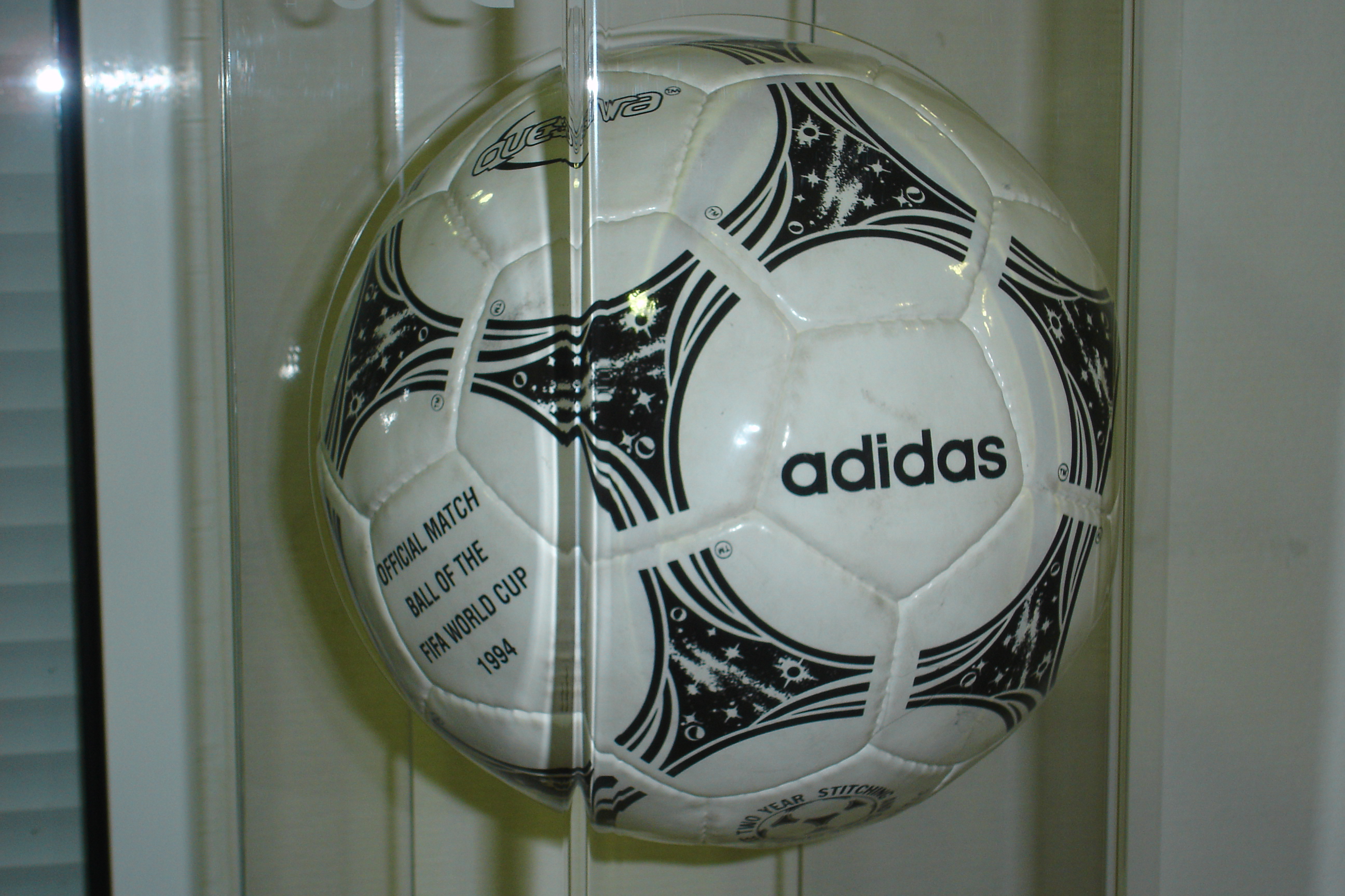 1994년 FIFA 월드컵 | 이름: 퀘스트라 제작: 아디다스 특징: 고에너지 반환을 위한 폴리에틸렌 폼 층이 있는 최초의 공. image_file: Adidas Questra 1994.jpg alt: 아디다스 퀘스트라 1994 caption: 아디다스 퀘스트라 1994 |