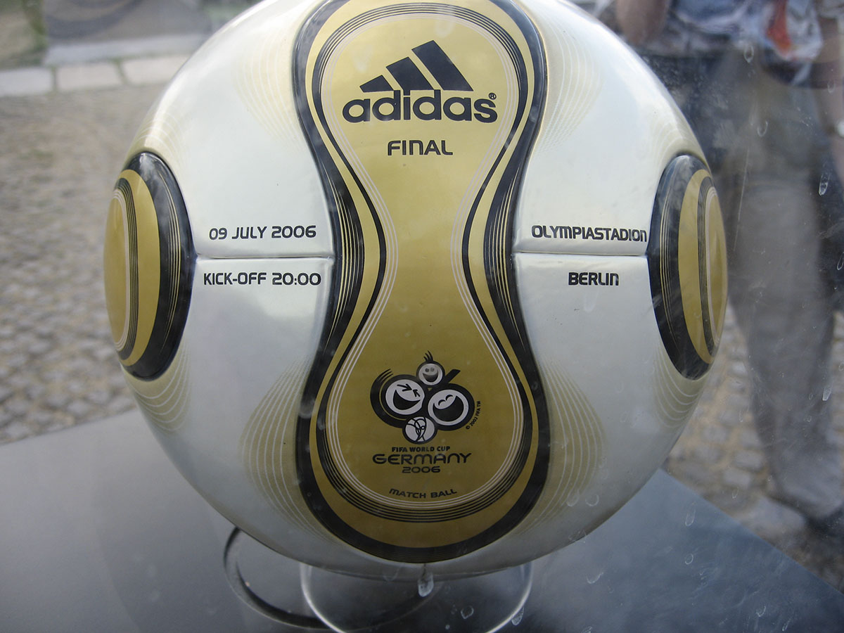 2006년 FIFA 월드컵 | 이름: 팀가이스트 제작: 아디다스 특징: 14개의 곡선 패널로 구성된 최초의 공. image_file: Adidas Teamgeist.jpg alt: 아디다스 팀가이스트 caption: 아디다스 팀가이스트 |