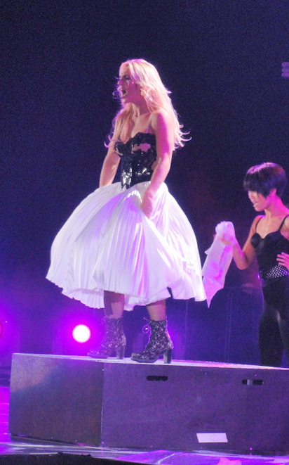 그러나 일부 비평가들은 스피어스의 댄스 실력 저하와 립싱크 논란을 지적하기도 했다. 엔터테인먼트 위클리는 스피어스의 관객과의 소통 부족과 댄스 능력 감소를 비판했지만, 그럼에도 불구하고 그녀의 외모와 미소는 최근 브리트니 쇼에서 보기 힘들었던 긍정적인 요소라고 덧붙였다.[34] 로스앤젤레스 타임스는 스피어스가 과거의 논란을 지우고 팝의 성녀-창녀 콤플렉스를 잘 활용한다고 평가했다.[35] 버라이어티는 시각적으로는 인상적이지만, 인간적인 매력이 부족하다고 지적했다.[36]