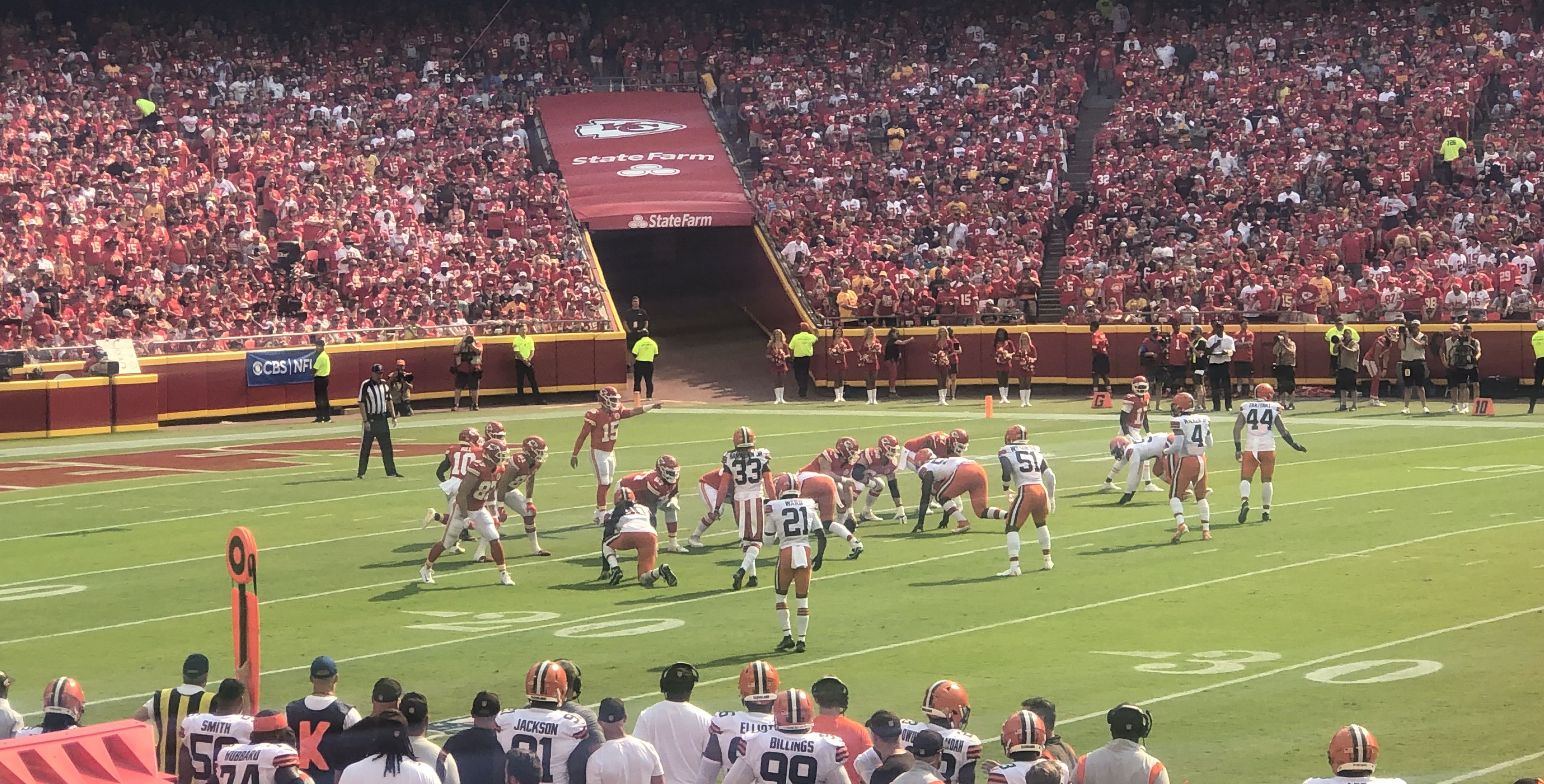 1990년 덴버 브롱코스와의 경기에서 관중 소음으로 인해 벌칙 위기에 처했던 사건은 NFL 역사에 기록되었다. 2021년 패트릭 마홈스가 이끄는 치프스는 클리블랜드 브라운스와의 경기에서 활약했다. 2013년 오클랜드 레이더스와의 경기에서 137.5dB의 관중 소음으로 기네스 세계 기록을 세웠고, 2014년 뉴잉글랜드 패트리어츠와의 경기에서 142.2dB로 자체 기록을 경신했다. 2021년, 치프스는 애로헤드 스타디움의 명명권을 GEHA에 판매하여 GEHA 필드 앳 애로헤드 스타디움으로 이름을 변경했다.[21]