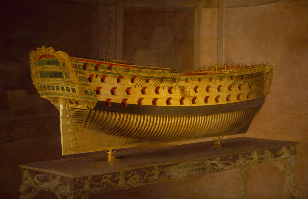 ''로열 조지''의 선미: 조지프 마셜이 그린 1779년 모형 그림, 그리니치 국립 해양 박물관 소장