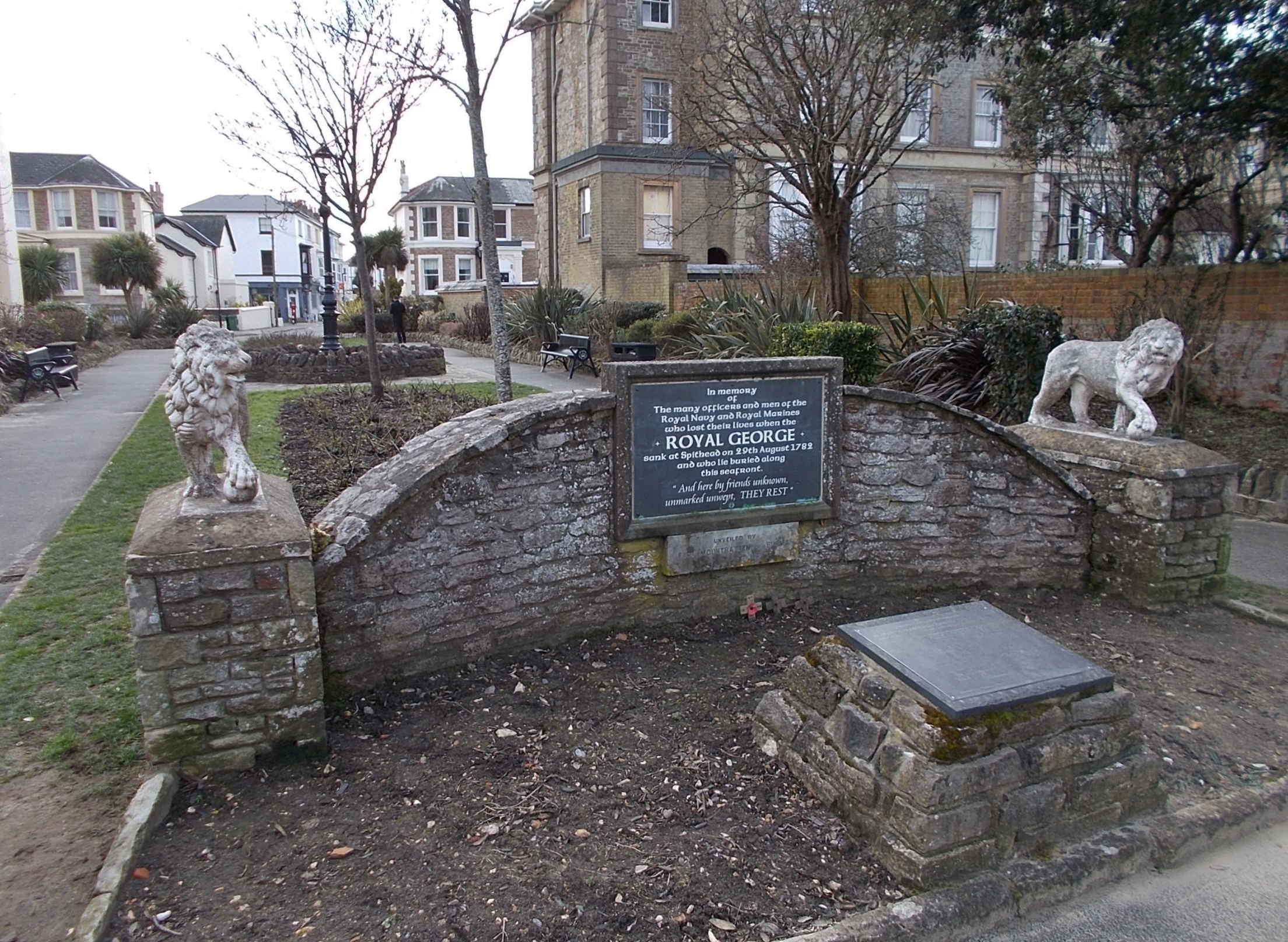 많은 희생자들이 와이트 섬의 라이드 해안으로 떠내려와 해변을 따라 뻗어 있는 공동 묘지에 묻혔다.[7] 이 땅은 빅토리아 시대의 에스플러네이드 개발 과정에서 간척되었고, 현재는 라이드 에스플러네이드와 더 스트랜드의 거리와 건물들이 들어서 있다.[7] 2009년 4월, 와이트 섬 의회는 라이드 에스플러네이드에 HMS 로열 조지를 기리는 새로운 기념 명판을 설치했다.[7]