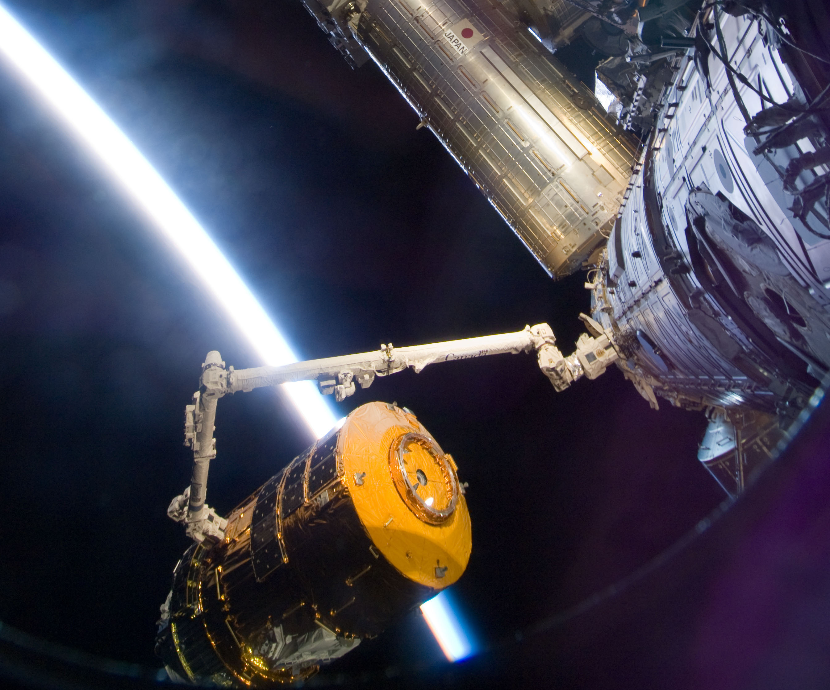 니콜 스콧이 캐나다암2로 HTV-1을 포획, ISS와 고정했고,[111] 하모니 모듈의 공통 정박 장치(CBM)와 도킹했다.[112][113] 이는 로봇 팔을 이용한 우주선 도킹의 세계 최초 사례이다.[106]