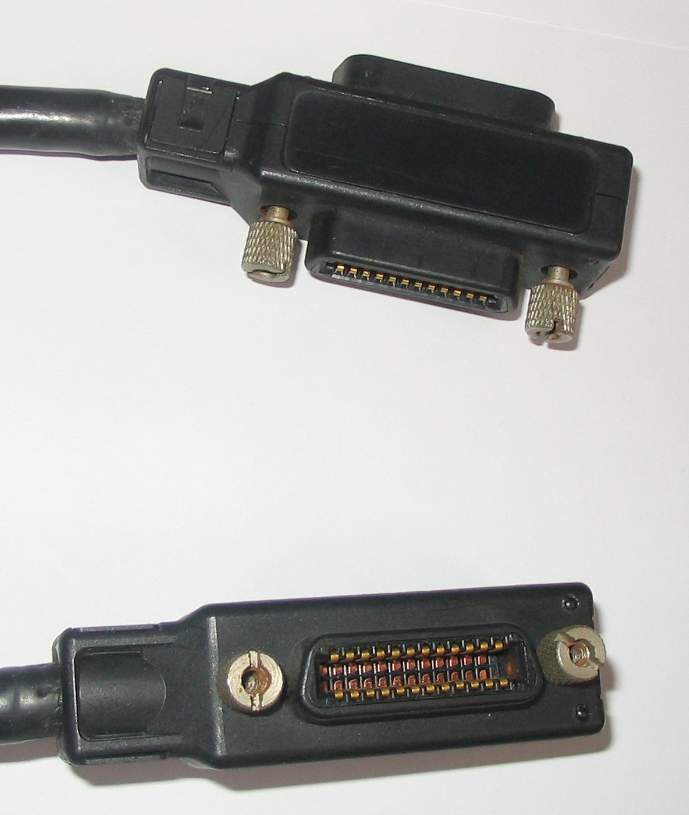 Amphenol영어사가 설계한 24핀 마이크로 리본 커넥터를 채용하고 있으며, 흔히 센트로닉스 타입이라고 잘못 불린다. 수/암 커넥터가 쌍을 이루어 쌓아 올리기(스택)로 간단하게 데이지 체인이 가능하다(이를 피기백 커넥터라고도 한다). 스택 가능한 커넥터 수의 기계적 한계는 4개 이하이다. 이들은 UTS(이제 거의 폐지되었다)나 미터(M3.5 x 0.6) 나사로 고정된다. 관례적으로 미터 나사는 검게 칠해져 UTS 나사와 맞지 않도록 되어 있다.[20][21]