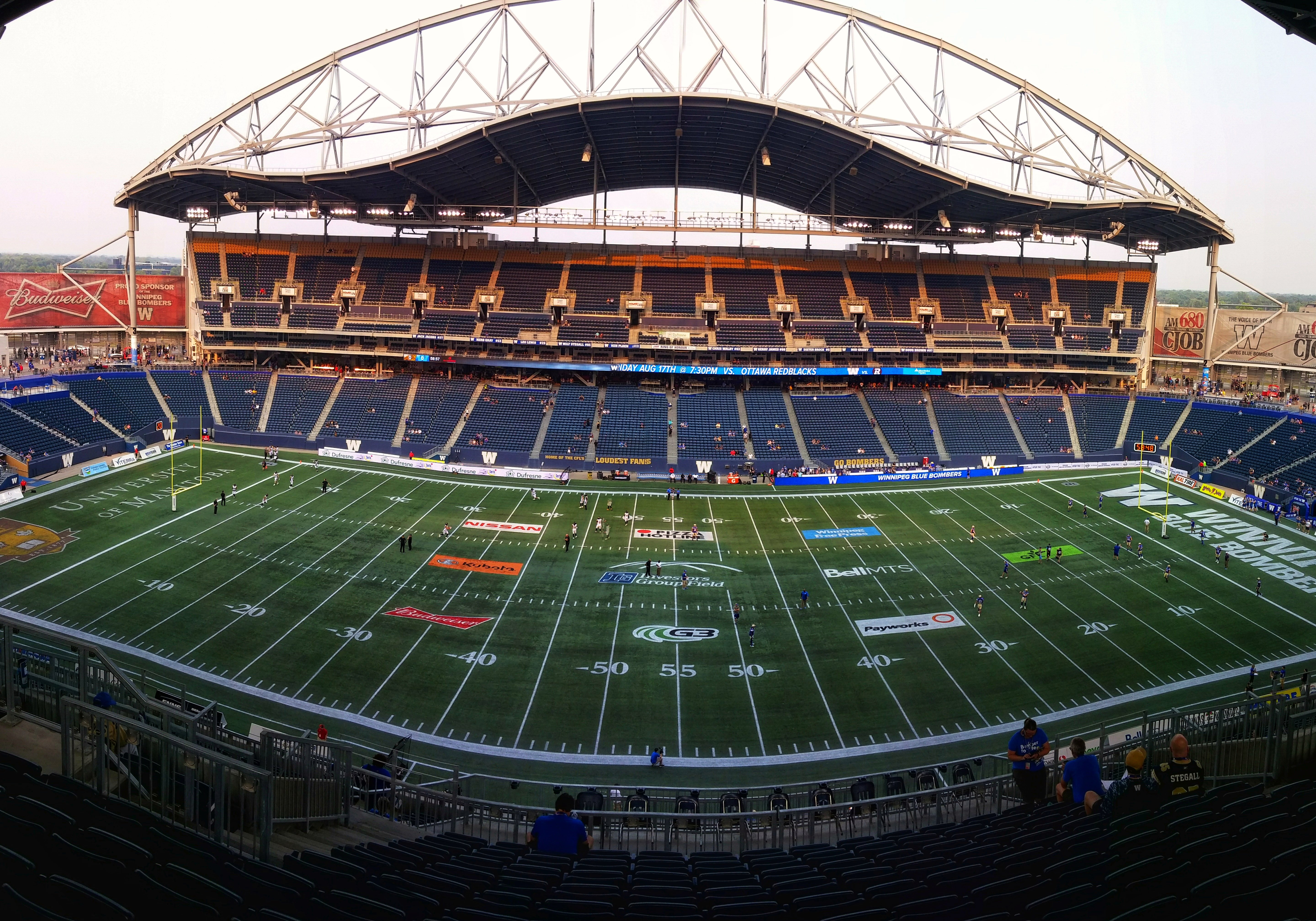 위니펙 블루 보머스는 2013년 6월 27일 IG 필드에서 첫 홈 경기를 치렀으며, 몬트리올 알루엣츠에게 38-33으로 패했다.[30][31]