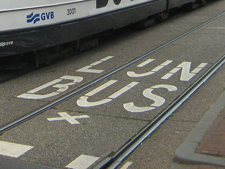 (공공 버스 노선용 도로 구간, 문자 그대로 "노선 버스") 표지판. IJ가 "끊어진 U" 글리프로 표시되어 있다.