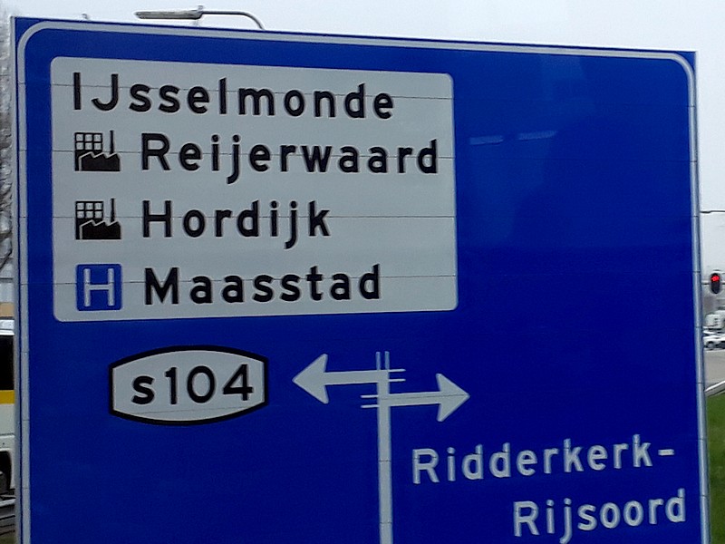 로테르담 지역의 도로 표지판으로, 고유 명사 아이설몬데에 대문자 이중 자모 IJ가 사용되었다.
