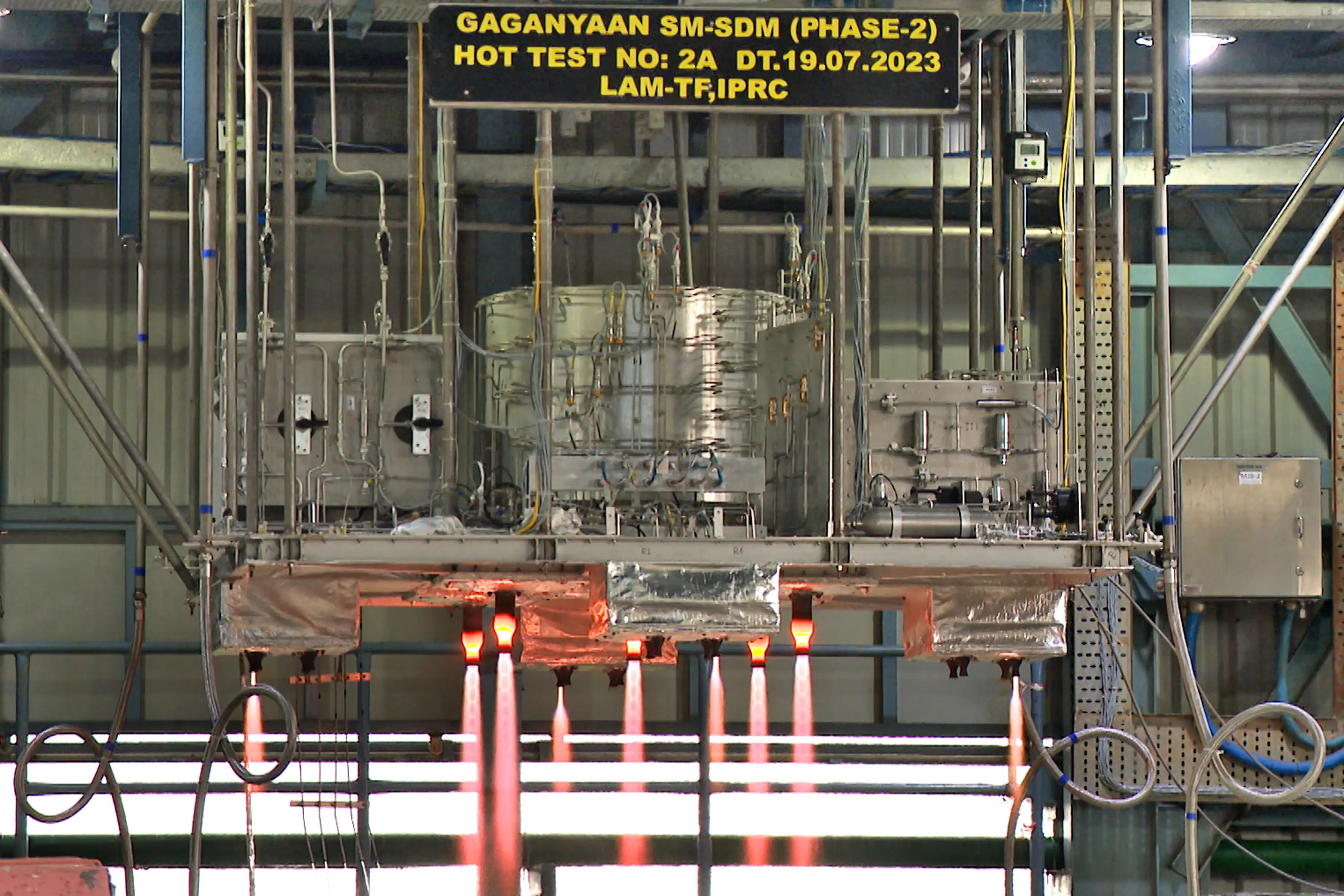 2023년 10월 21일, 시험 비행 중단 임무-1(TV-D1)이 성공적으로 수행되었다. 이는 고고도에서 비상 상황 발생 시 승무원 탈출 시스템(CES)이 제대로 작동하는지를 검증하는 시험이었다.[170][171] 첫 발사 시도는 예정 시간 5초 전에 중단되었으나, 두 번째 시도에서 성공적으로 발사되었다.[172] 시험 중 승무원 모듈은 로켓에서 분리되어 안전한 궤적을 따라 이동한 후 낙하산을 펼쳐 벵골만에 착수했다.[173] 다만, 회수 과정에서 모듈이 뒤집히는 문제가 발생하여, 향후 시험(TV-D2)에서는 이를 방지하기 위한 '정립 시스템'을 추가로 시험할 예정이다.[174]