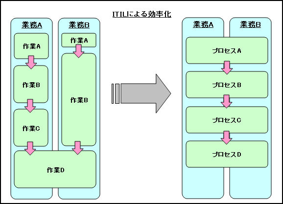 | 2 | 서비스 딜리버리 (service delivery영어) | 통칭 "적본"[24], IT를 비즈니스에서 이용하는 이용자의 서비스 요구 관리 |
