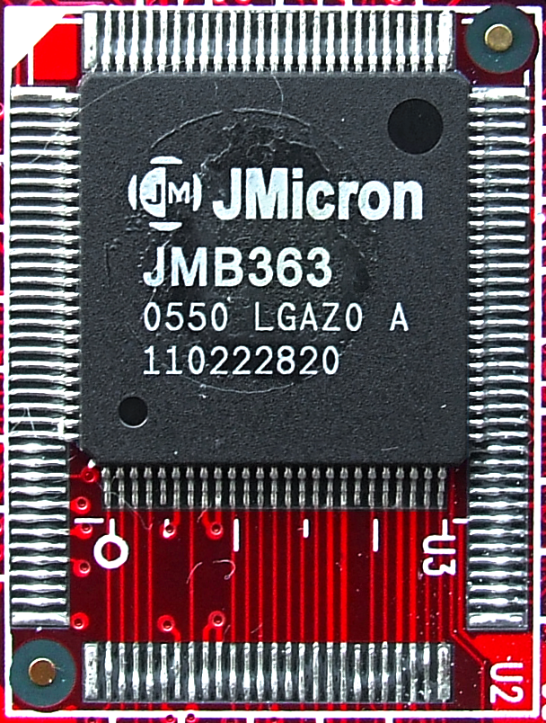 - JMB363: PCIe 1.0a x1 to 2x Serial ATA II 및 1x PATA UDMA/100 채널[17]