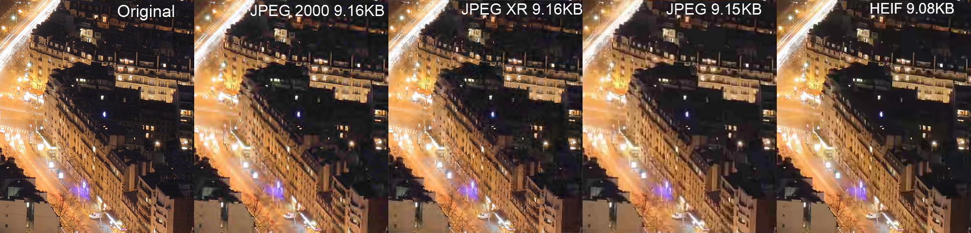 JPEG 표준과 비교했을 때, JPEG 2000은 이미지 특성에 따라 일반적으로 20% 범위의 압축 성능 향상을 보인다. 특히 고해상도 이미지의 경우, JPEG 2000의 공간 중복성 예측이 압축 과정에 더 많이 기여하여 더 큰 이점을 얻는 경향이 있다. 그러나 압축 성능의 향상 자체는 기존 JPEG 표준에 비해 다소 미미하며, JPEG 2000이 제공하는 주요 장점은 코드 스트림의 상당한 유연성이다.