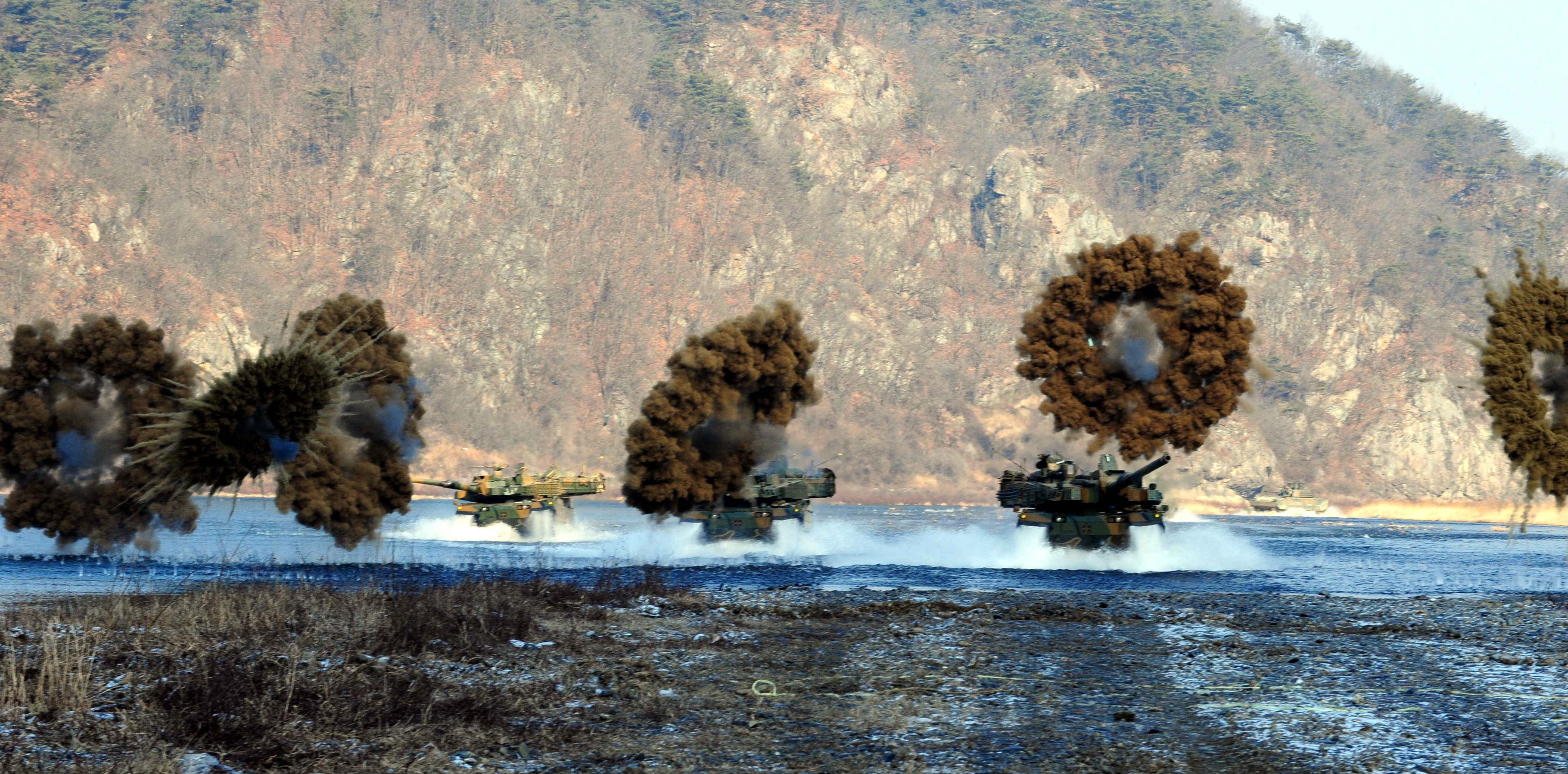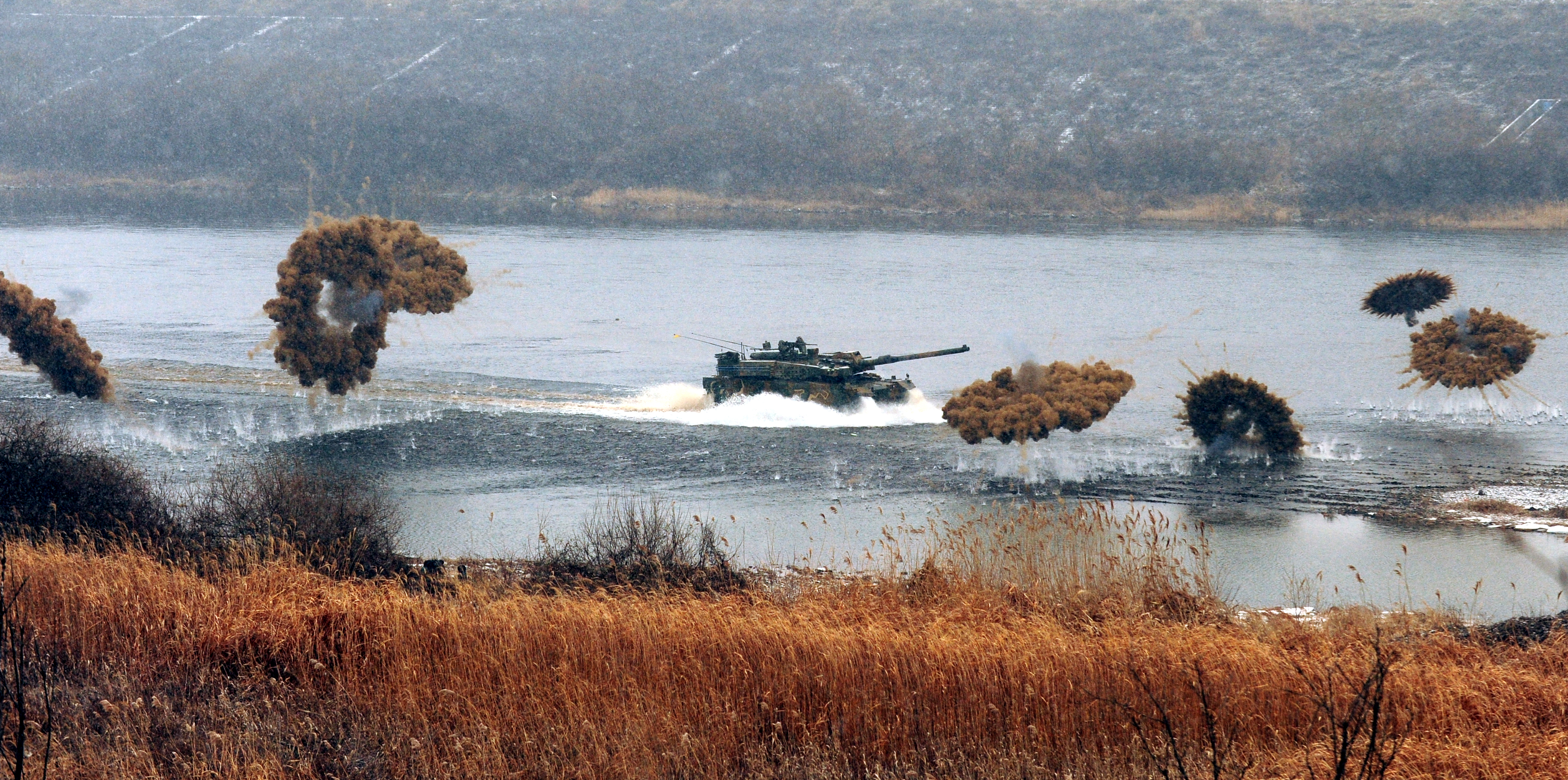 K2 흑표는 2014년 7월 1일부터 대한민국 육군에 배치된 양산형 전차이다. 포탑과 차체 측면에 폭발 반응 장갑이 추가되었다.[5] K2는 스노클 시스템을 사용하여 최대 4.1미터 깊이의 강을 건널 수 있으며, 이는 전차 지휘관에게 함교 역할도 한다.[5] 이 시스템을 준비하는 데 약 20~30분이 소요된다.[83][84] K2는 많은 강이 있는 까다로운 전장을 항해할 수 있고, 밀폐된 공기 순환 시스템을 통해 생화학 공격으로부터 완벽하게 보호받는다. 도하 중에는 포탑이 방수되지만, 차체는 차량 내부의 공기로 인한 과도한 부력을 방지하고 궤도가 지면에 단단히 접지되도록 500USgal의 물을 받아들일 수 있다. 또한, 전차는 수면으로 떠오르자마자 즉시 전투 준비 태세를 갖출 수 있다.[84][85]5. 수출