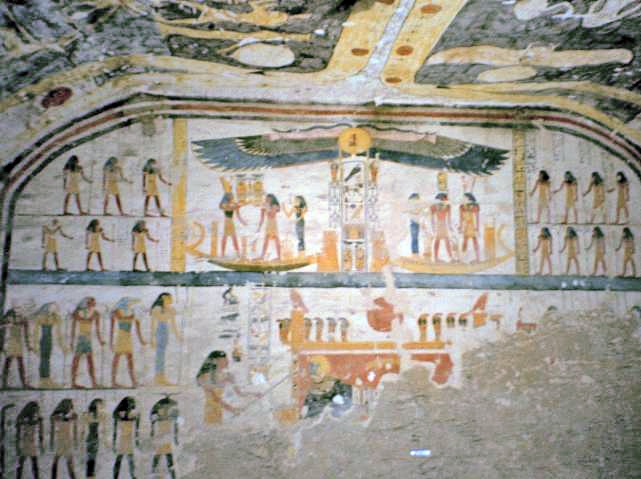 제일 안쪽 벽에는 수많은 신들에게 둘러싸인 람세스가 바크를 타고 있는 모습이 벽화로 그려져 있다. 이 방의 벽화에는 노란색, 진한 파란색, 검정색이 염료로 사용되어 시각적으로 눈에 띄며, 왕가의 계곡에서도 특이한 벽화 장식에 속한다. 원래 배치되어 있던 석관은 사라진 지 오래지만, 람세스 9세의 미라 자체는 1881년 데르 엘 바하리의 은닉처 (DB320)에서 발견되었다.