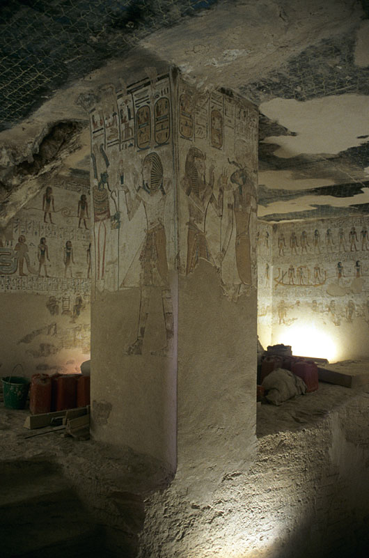 방(F)의 기둥은 석관 통과를 위해 제거되었고 2개만 복원되었다. 나머지 2개는 데르엘메디나의 파네브가 빼돌려 자기 무덤(TT211)에 썼다는 설이 있다. 안치실(J)는 아치형 천장에 8개 기둥이 있으며, 세티 1세(KV17)와 람세스 2세(KV7)의 안치실 구조와 유사하다.