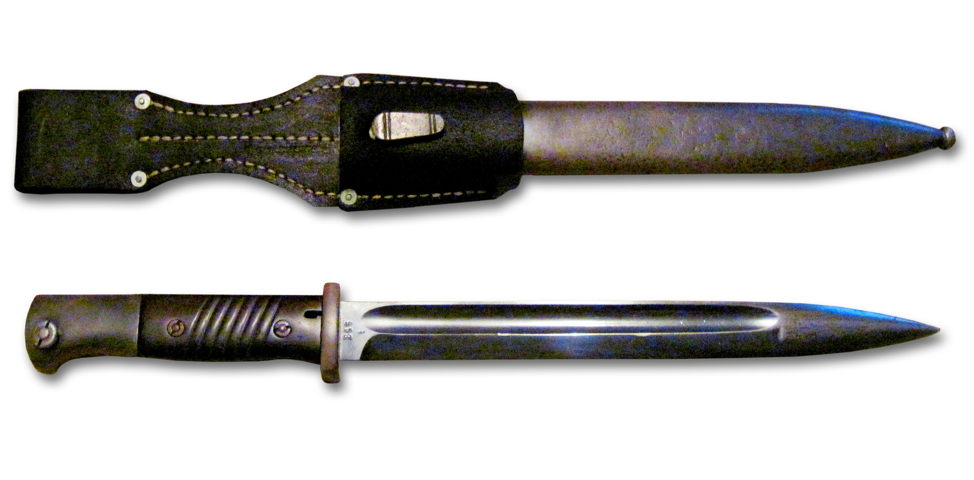 카라비너 98k는 S84/98 III 총검과 함께 사용하도록 설계되었다.[12] S84/98 III 총검은 날 길이 252mm, 전체 길이 385mm이며, 칼집과 함께 제공되었다.[13] ''Seitengewehr 42''(Seitengewehr 42)는 카라비너 98k에 장착할 수 있는 더 짧은 다용도 근접전투용 나이프였으나, 소량만 지급되었다.