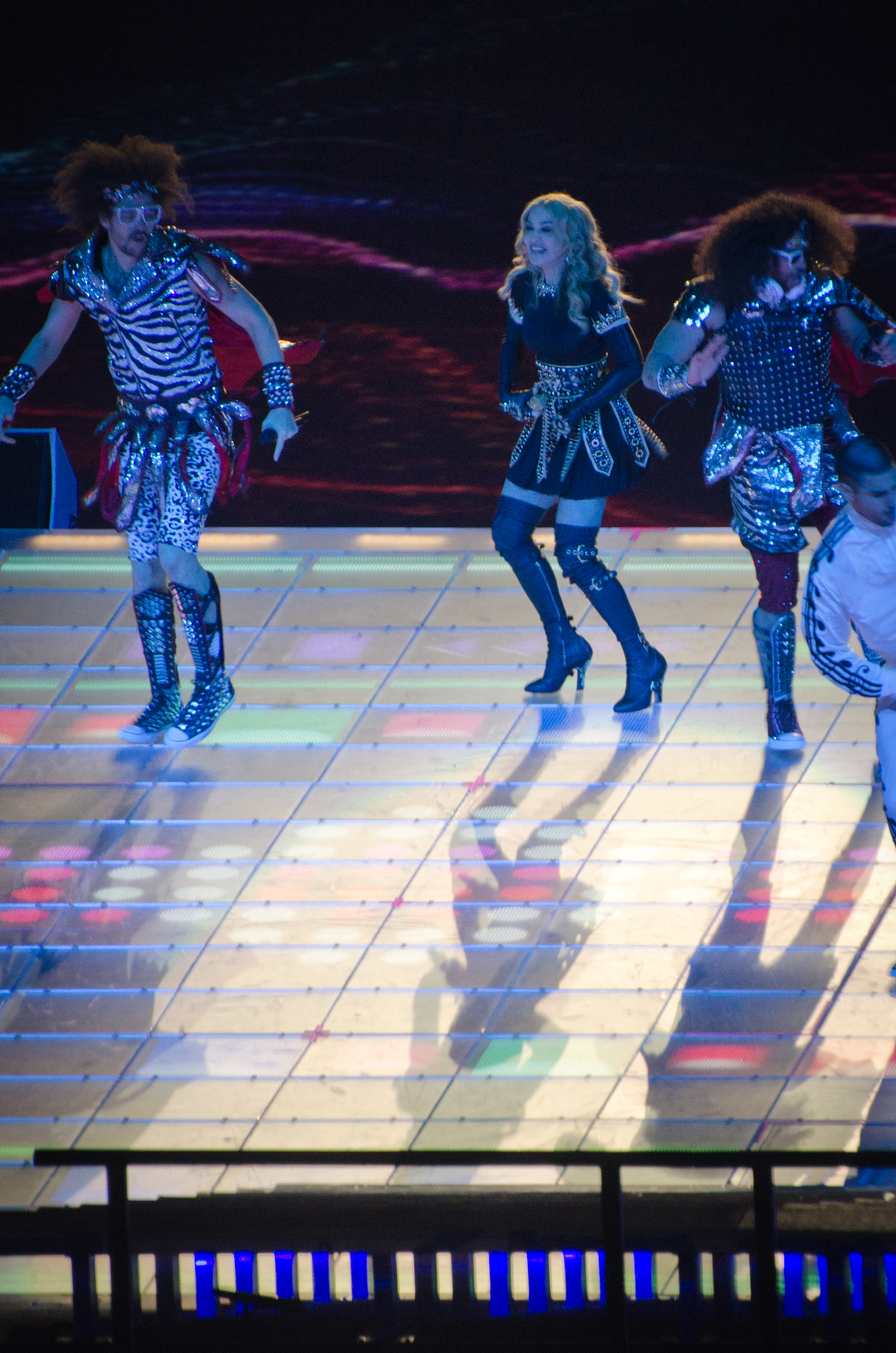2012년 2월 5일, 슈퍼볼 XLVI 하프타임 쇼에서 마돈나와 함께 "Music"을 공연했다.[20] "Music"은 "파티 록 앤섬"과 "섹시 앤 아이 노우 잇"을 매시업한 곡이었다.