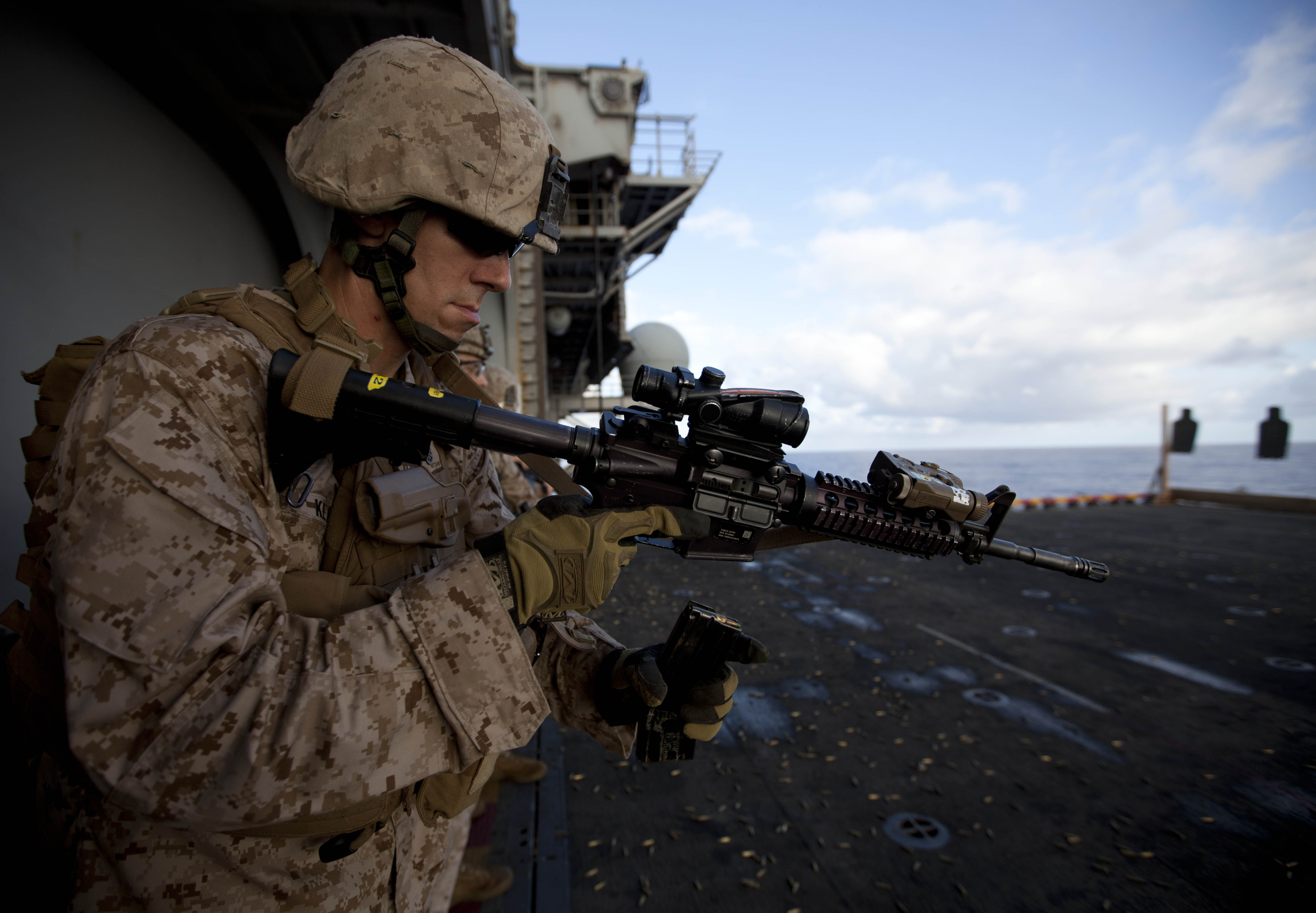 2015년 7월, 주요 해병대 사령부는 육군과 마찬가지로 표준 보병 소총으로 M16A4를 M4로 전환하는 것을 지지했다. 이는 카빈의 가벼운 무게, 소형 크기, 그리고 대부분 근접전에서 발생하는 현대 전투 상황에 대처할 수 있는 능력 때문이다. 만약 분대가 더 먼 거리에서 교전해야 할 경우, M27 보병 자동소총을 지정 사수 소총으로 사용할 수 있다. 이 변경이 승인되면 M16은 지원 인원에게 배치되고, 이미 무기고에는 모든 보병에게 필요한 1만 7천 정의 M4가 보유되어 있었다.[11] 2015년 10월, 미국 해병대 사령관 로버트 넬러는 M4 카빈을 모든 보병 대대, 경비대 및 지원 학교의 주력 무기로 하는 것을 공식적으로 승인했다. 이 전환은 2016년 9월까지 완료될 예정이었다.[12] 2017년 12월, 해병대는 보병 분대의 모든 해병에게 M27을 장비하고, M4는 소대장 이상의 지휘관에게 계속 사용하도록 결정했다는 것을 밝혔다.[13] 미국 해병대 특수작전사령부(MARSOC) 또한 M4를 유지하고 있는데, 그 이유는 더 짧은 총열이 밀폐된 공간에서 작전하는 방식에 더 적합하기 때문이다.[14]