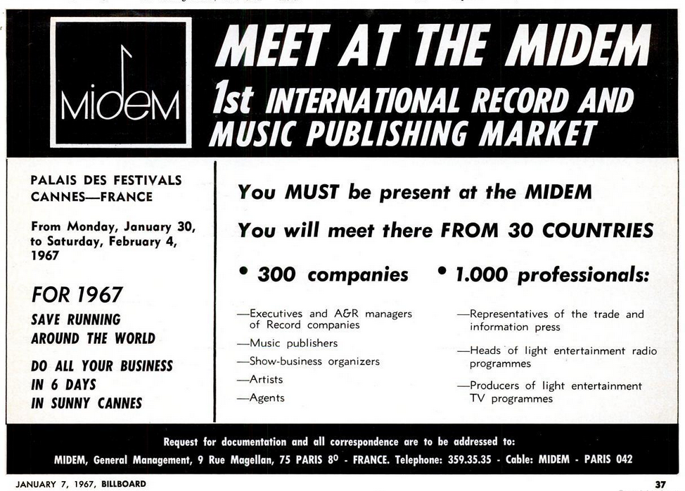 원본 소스에 따르면, 대한민국은 MIDEM에 참가한 기록이 없다. 따라서 이 섹션에는 작성할 내용이 없다.