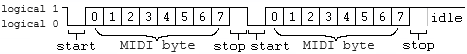 | 주요 메시지 종류 | 노트 온/오프 컨트롤 체인지 프로그램 체인지 피치 벤드 시스템 익스클루시브 |