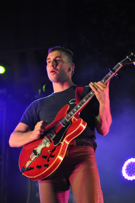 | alt1 = 텔레비전 스튜디오 세트에서 스파이키 헤어스타일에 짙은 색 안경을 쓰고 전기 기타를 든 젊은 백인 남성.