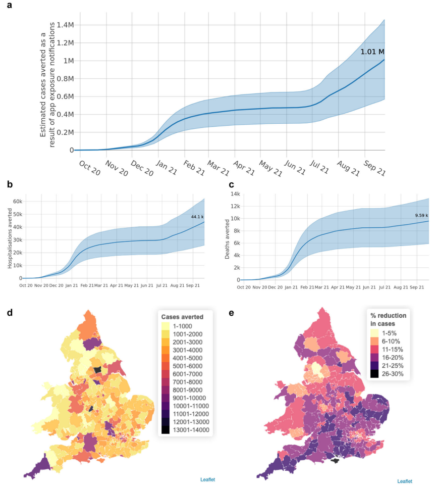 앱의 효과에 대한 평가는 여러 연구를 통해 이루어졌다. 2021년 2월 앨런 튜링 연구소(Alan Turing Institute)와 옥스퍼드 대학교(University of Oxford) 연구팀은 앱이 생성한 데이터를 분석하여, 2020년 9월 24일 출시부터 12월 말까지 앱이 보낸 170만 건의 노출 알림 덕분에 COVID-19 팬데믹 2차 유행 초기 몇 달 동안 잉글랜드와 웨일스에서 약 60만 건의 감염 사례를 예방했다고 결론지었다. 또한, 2023년 2월 국제 학술지 ''네이처 커뮤니케이션(Nature Communications)''에 발표된 후속 연구에서는 앱 출시 첫 해(2020년 10월~2021년 9월) 동안 앱의 접촉 추적 기능이 약 100만 건의 감염 사례와 9,600명의 사망자를 줄이는 데 기여했다고 분석했다.