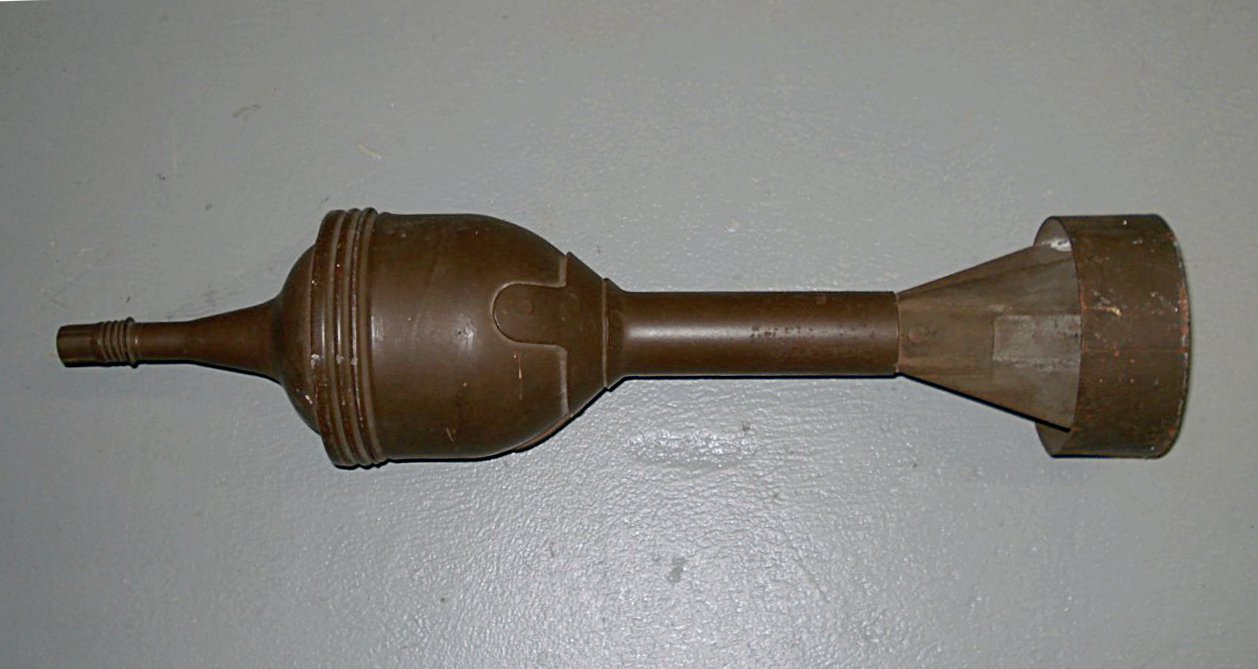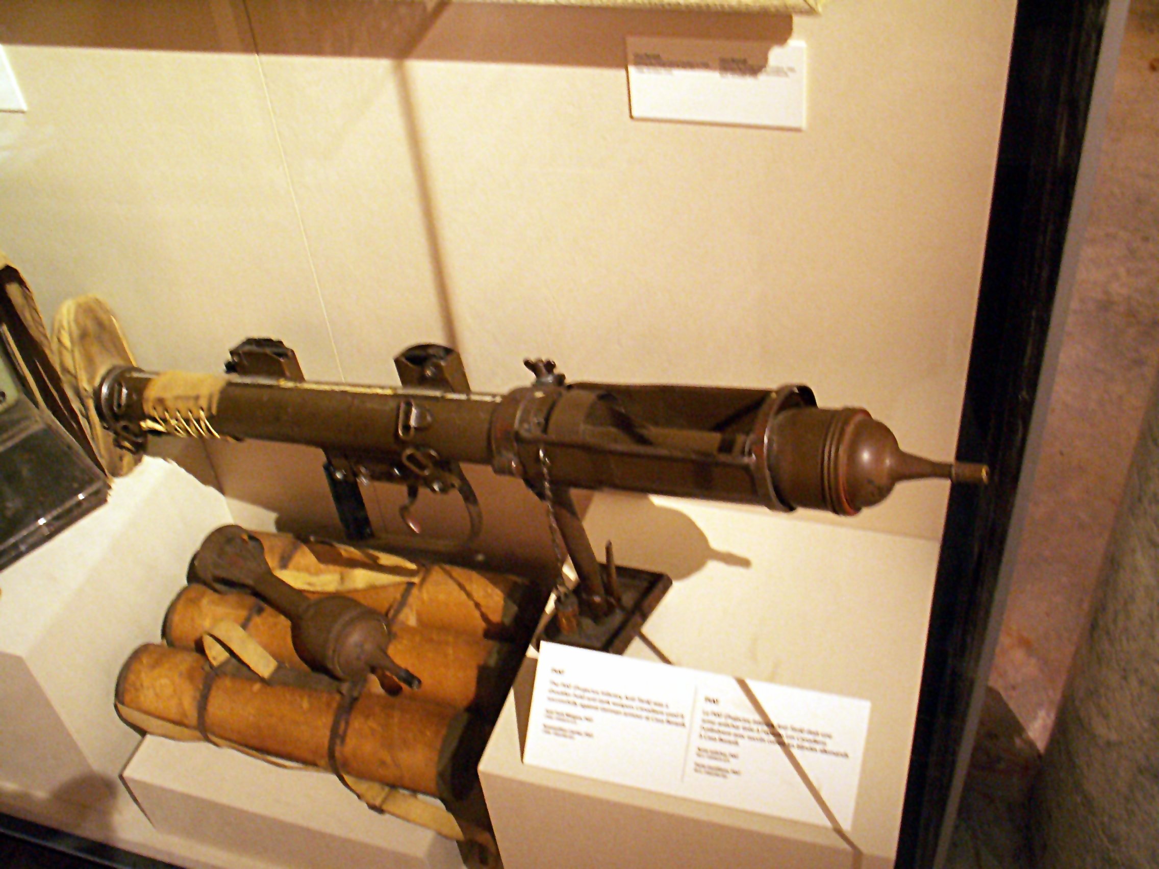 블랙커는 성형 작약 탄약의 존재를 알게 된 후, 이를 활용한 휴대용 대전차 무기 개발에 착수했다.[12] 그는 대형 스프링과 스피곳을 사용한 어깨 발사기 형태의 '베이비 폭격기'를 개발했지만, 시험 결과 케이스의 약함, 스피곳 발사 불량, 폭탄의 불발 등의 문제점이 드러났다.[13]