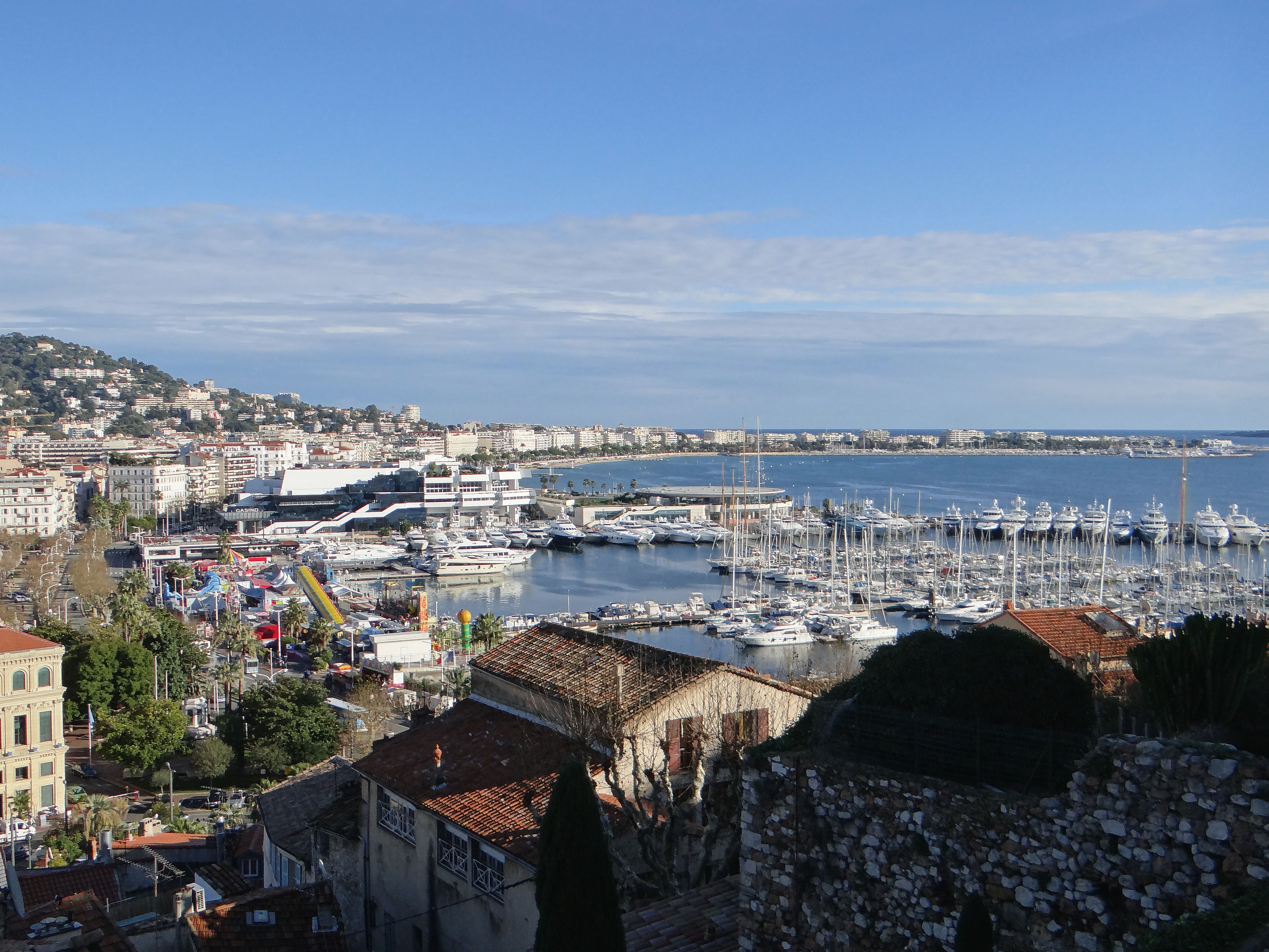 르 쉬케에서 바라본 의 모습. 스타와 해리슨은 1971년 칸 영화제를 위해 빌린 요트에서 이 곡을 쓰기 시작했다.