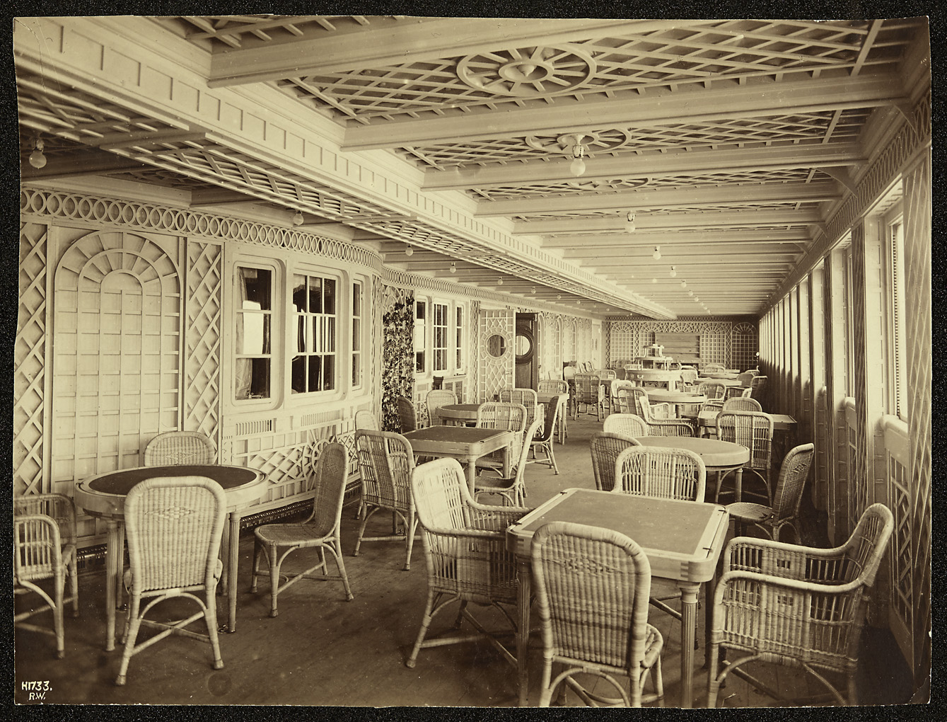 - '''A 갑판'''(산책 갑판) - 거의 1등실 전용으로, 1등실 객실, 라운지, 흡연실, 독서실, 야자수 코트가 있었다.