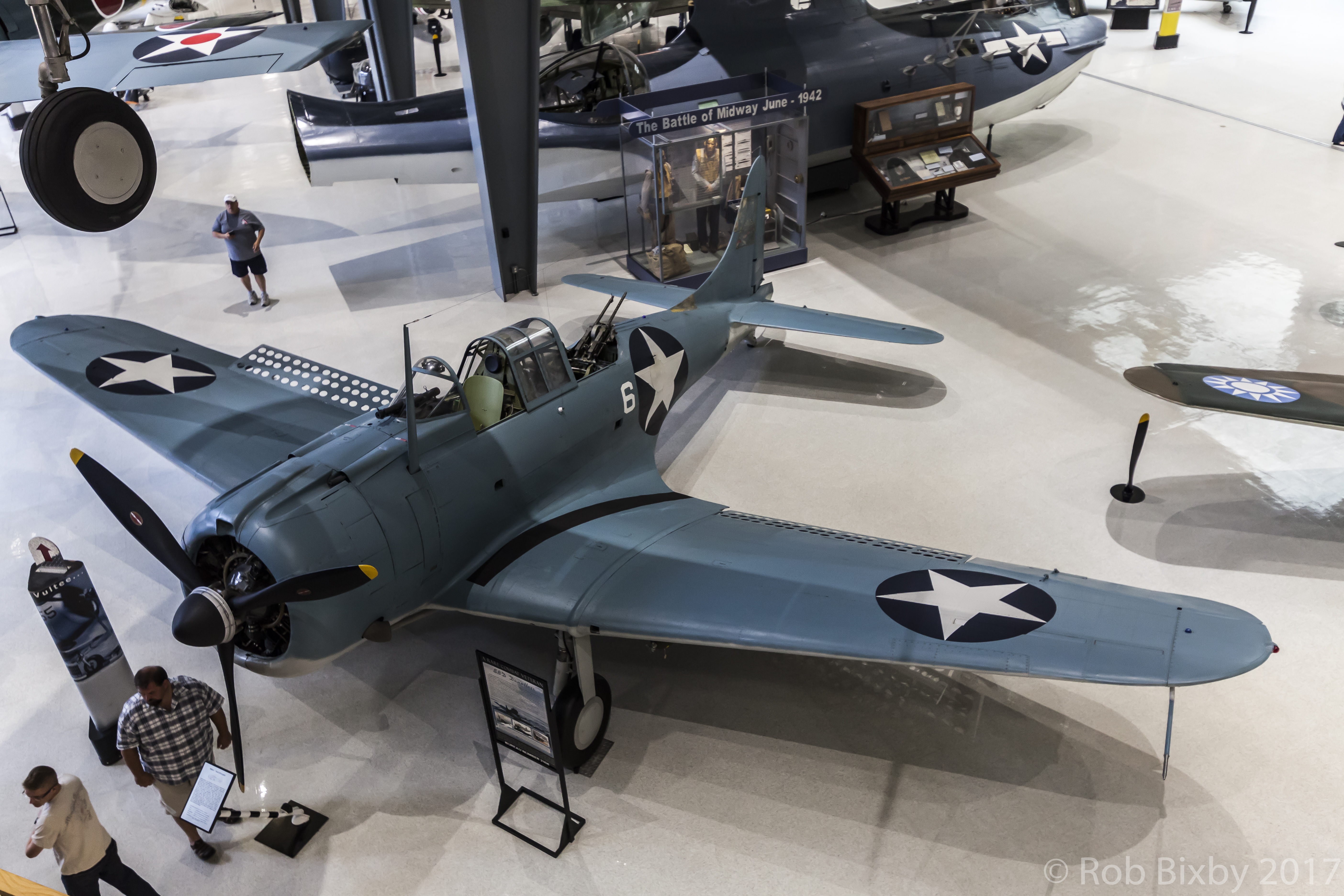 미드웨이 해전에서 해병대 SBD는 그다지 효과적이지 못했다. 미드웨이 환초에서 비행하던 VMSB-241 비행대는 새로운 돈틀리스(SB2U 빈디케이터에서 막 전환)를 사용한 급강하 폭격 기술을 훈련받지 못했다.[11] 조종사들은 더 느리지만 더 쉬운 활공 폭격 기술에 의존했다. 이로 인해 많은 SBD가 활공하는 동안 격추되었지만, 이러한 공격에서 살아남은 기체 중 하나가 현재 국립 해군 항공 박물관에 전시되어 있으며, 이 해전에 참전한 마지막 생존 항공기이다. 항공모함 탑재 비행대는 특히 그루먼 F4F 와일드캣의 호위를 받았을 때 효과적이었다.[12] 급강하 폭격의 성공은 한 가지 중요한 상황에서 비롯되었다.