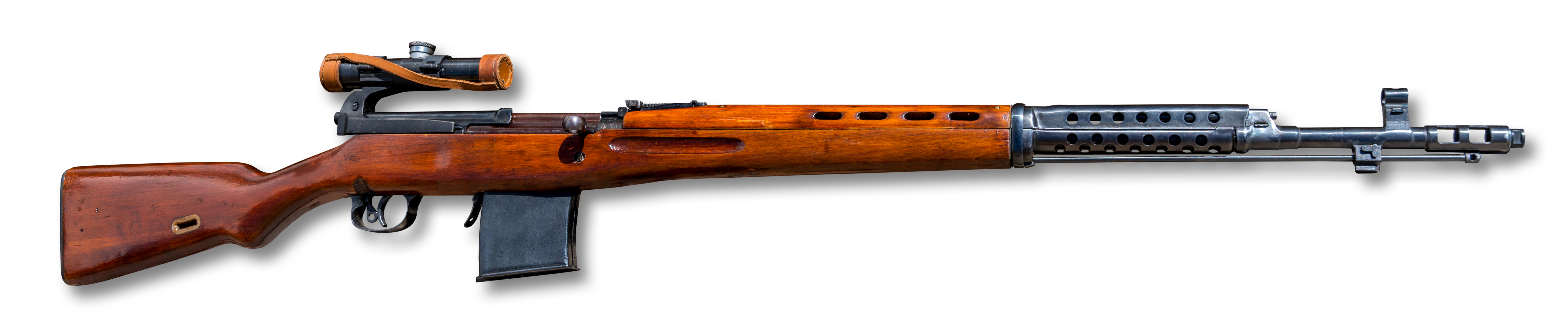 SKS는 세르게이 가브릴로비치 시모노프가 설계한 7.62×39mm 탄약을 사용하는 소련의 반자동 소총으로, 제2차 세계 대전 말기에 개발되어 소련군에 채용되었고 AK-47에 의해 대체되기 전까지 사용되었으며, 다양한 변형 모델이 현재까지도 사용되고 있다. - 소련의 반자동 소총 - 드라구노프 저격소총
