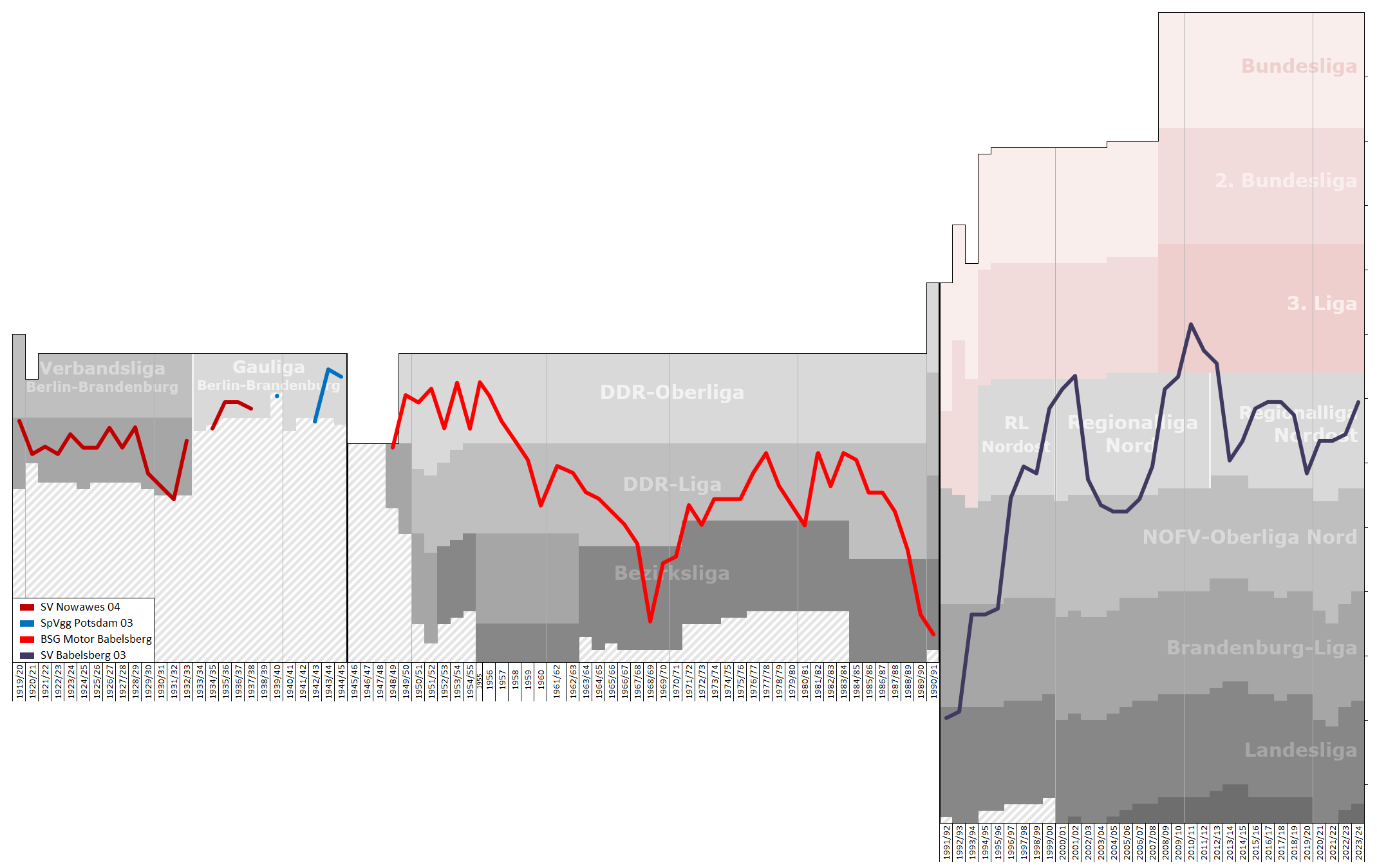 SV 바벨스베르크 03은 1903년에 ''SV 노바베스''라는 이름으로 창단되었다. 나치 독일 시대에는 1부 리그인 가울리가 베를린-브란덴부르크에서 단 3시즌 동안 활동하며 강등되었고, 10개 팀으로 구성된 리그에서 8위 이상을 기록한 적이 없었다. 1943년 ''SpVgg 포츠담''으로 가울리가에 복귀하여 제2차 세계 대전이 끝나기 전 2년 동안 3위와 4위를 기록했다.